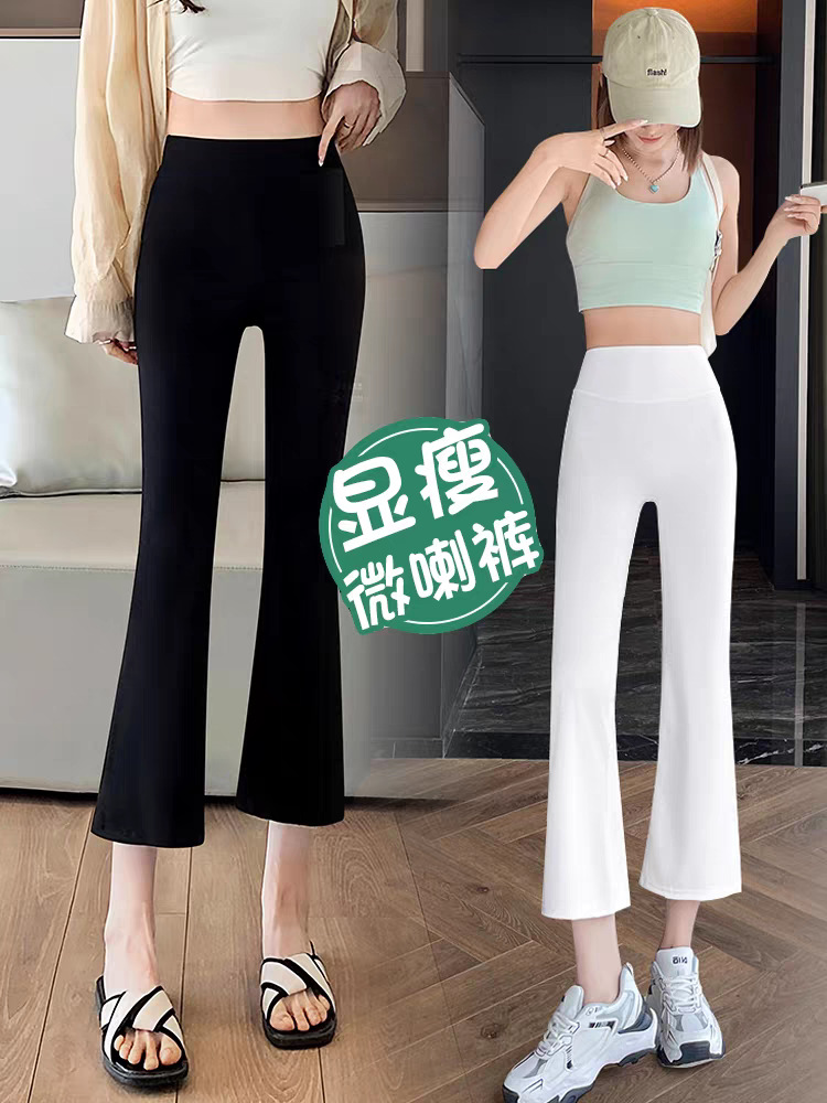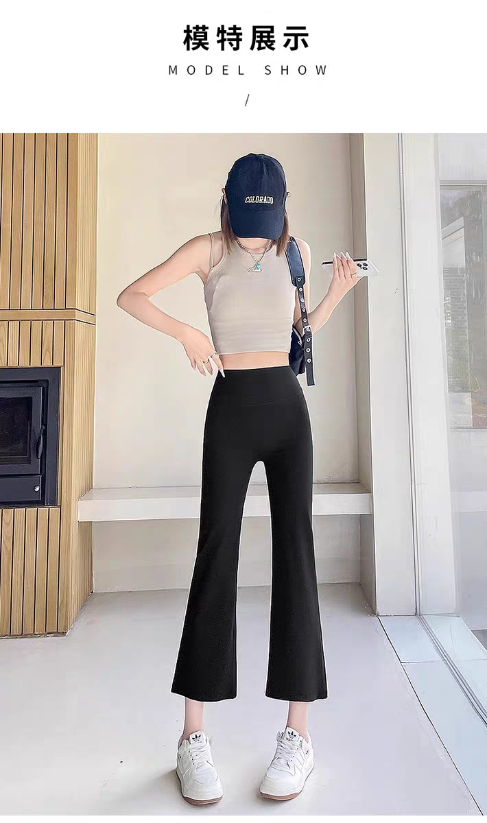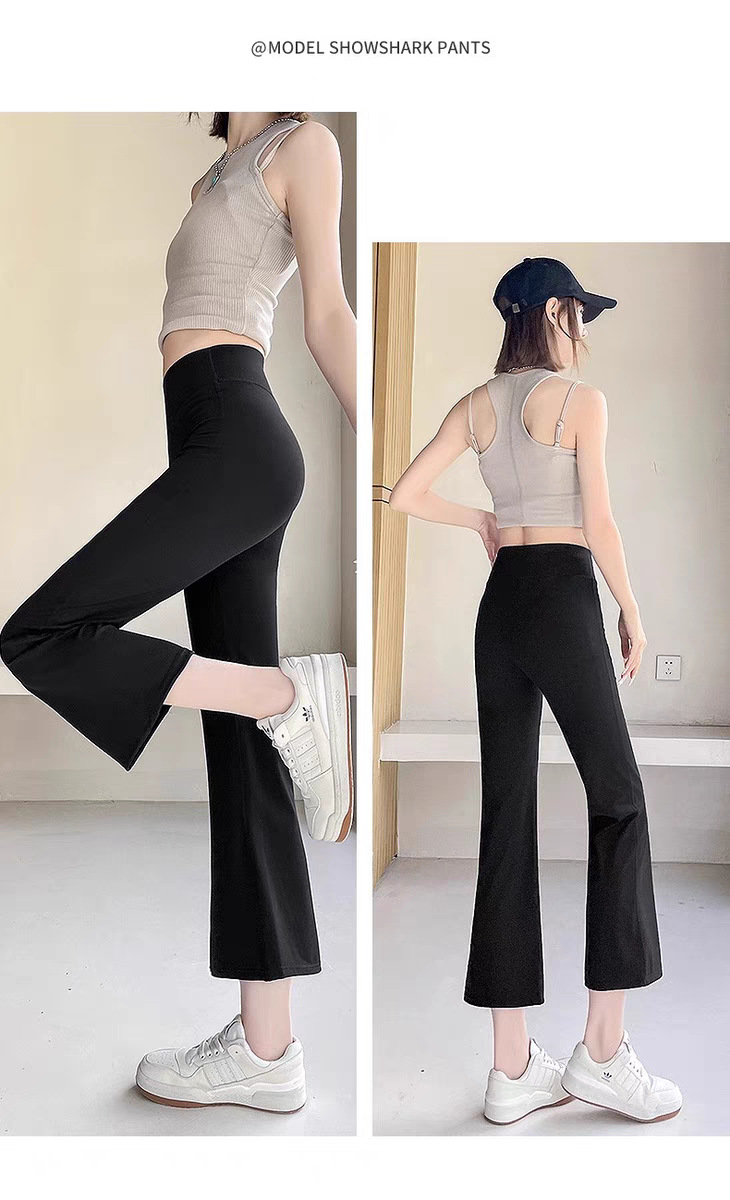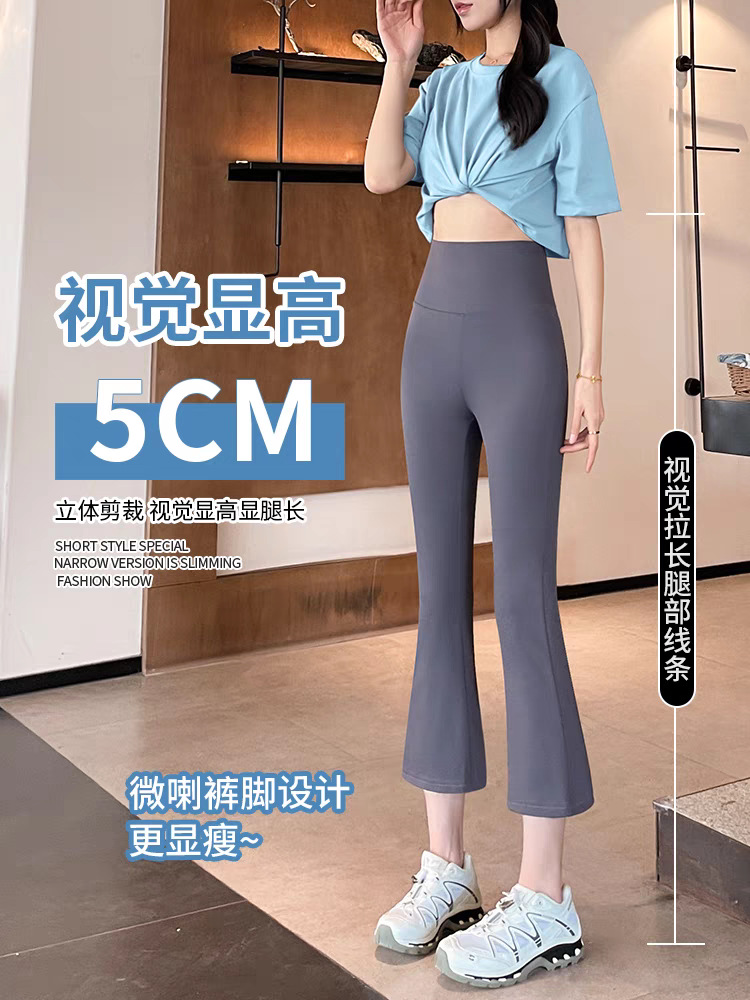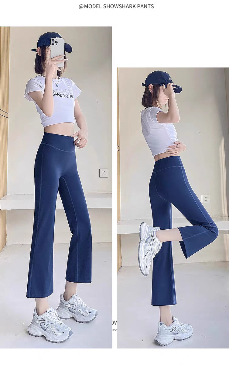 여성용 8부 부츠컷 팬츠, 여름 요가 팬츠, 하이웨이스트 얇은 아이스 실크 스트레이트 튜브 담배관 샤크 팬츠, 쁘띠 플레어 팬츠스토어 가기