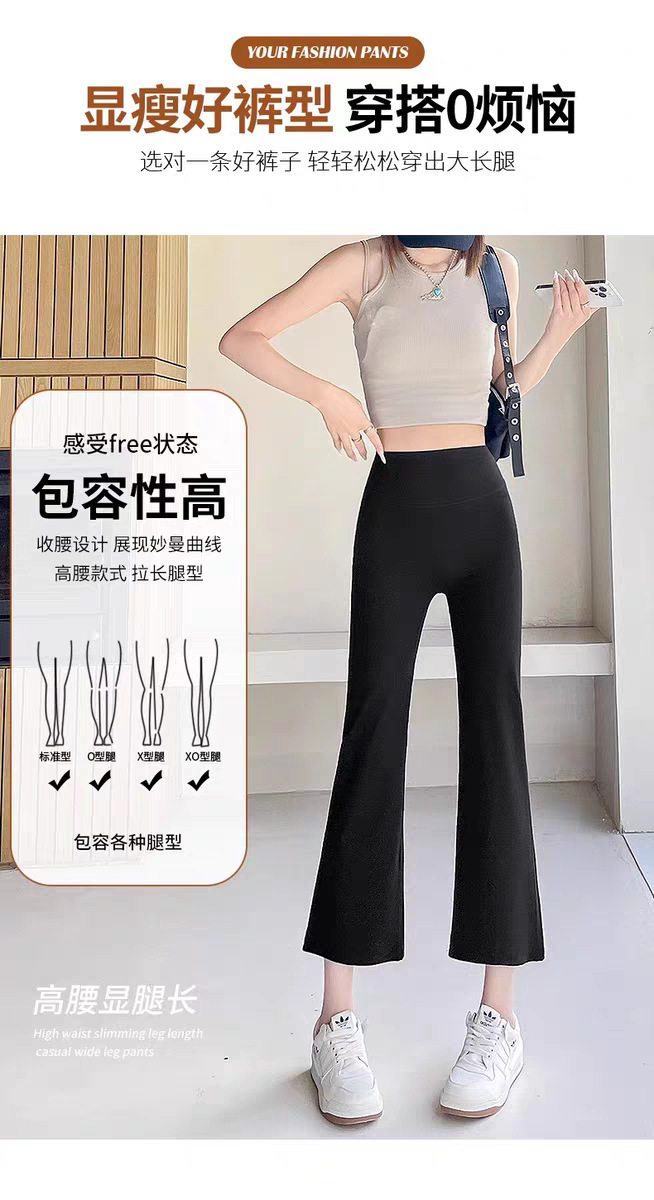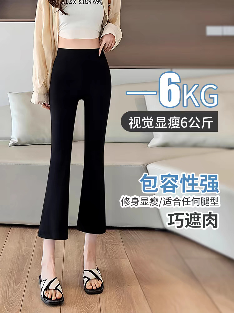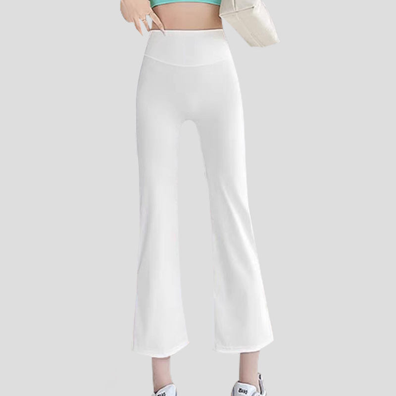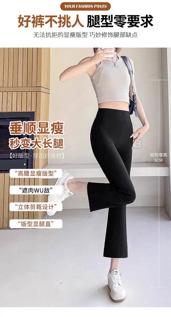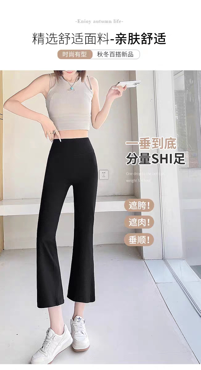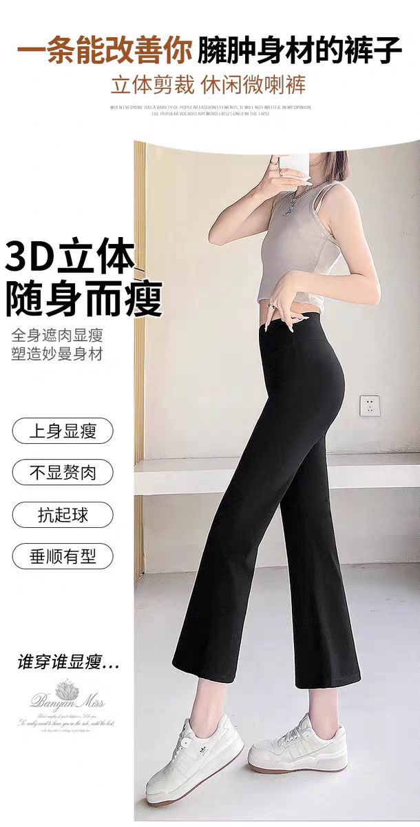 여성용 8부 부츠컷 팬츠, 여름 요가 팬츠, 하이웨이스트 얇은 아이스 실크 스트레이트 튜브 담배관 샤크 팬츠, 쁘띠 플레어 팬츠스토어 가기