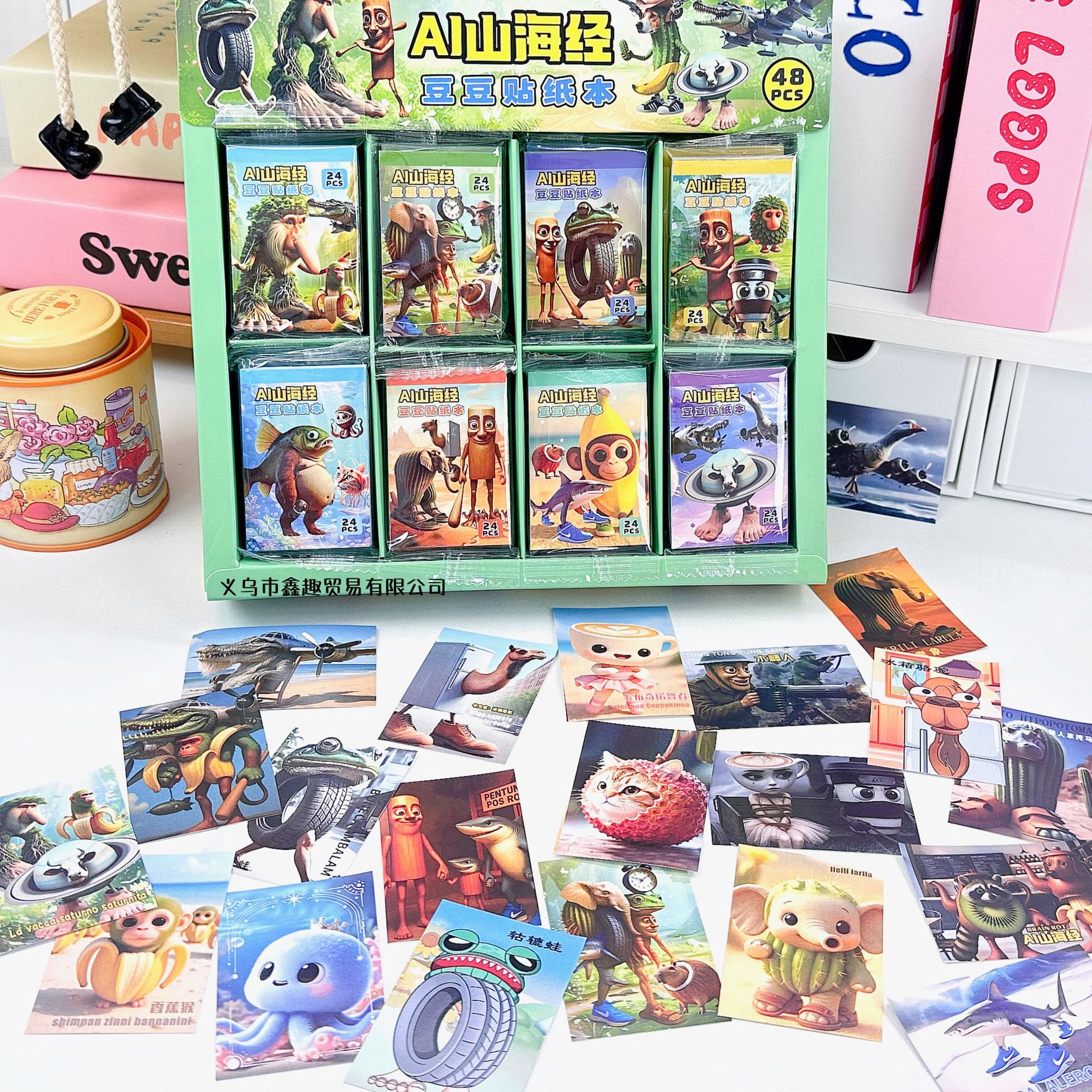 새로운 AI Shanhai Jing Doudou 스티커 어린이 교육 스티커 휴대용 DIY 만화 핸드북 스티커 소재