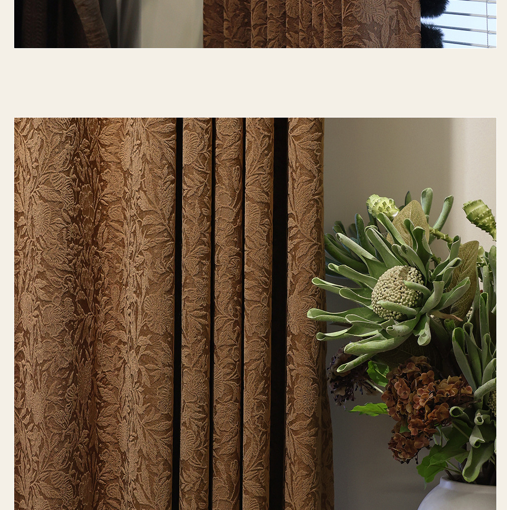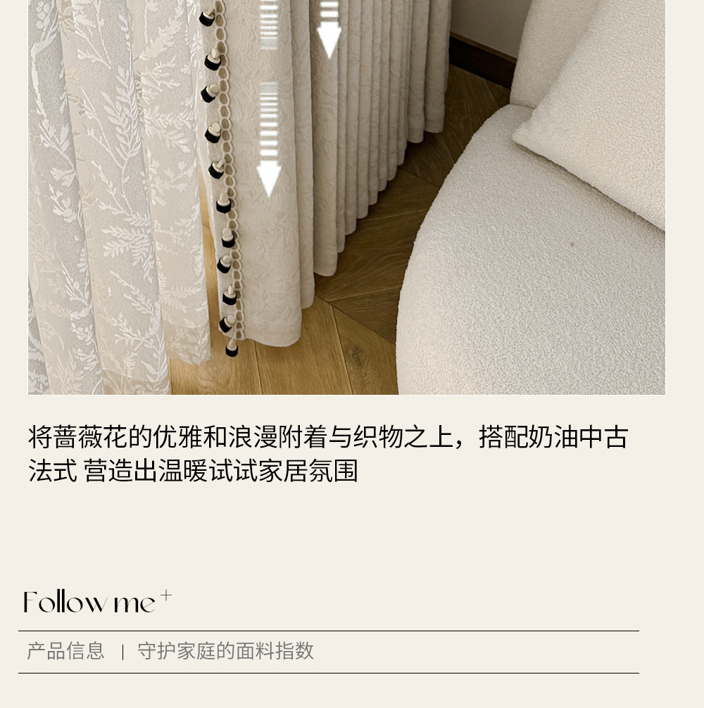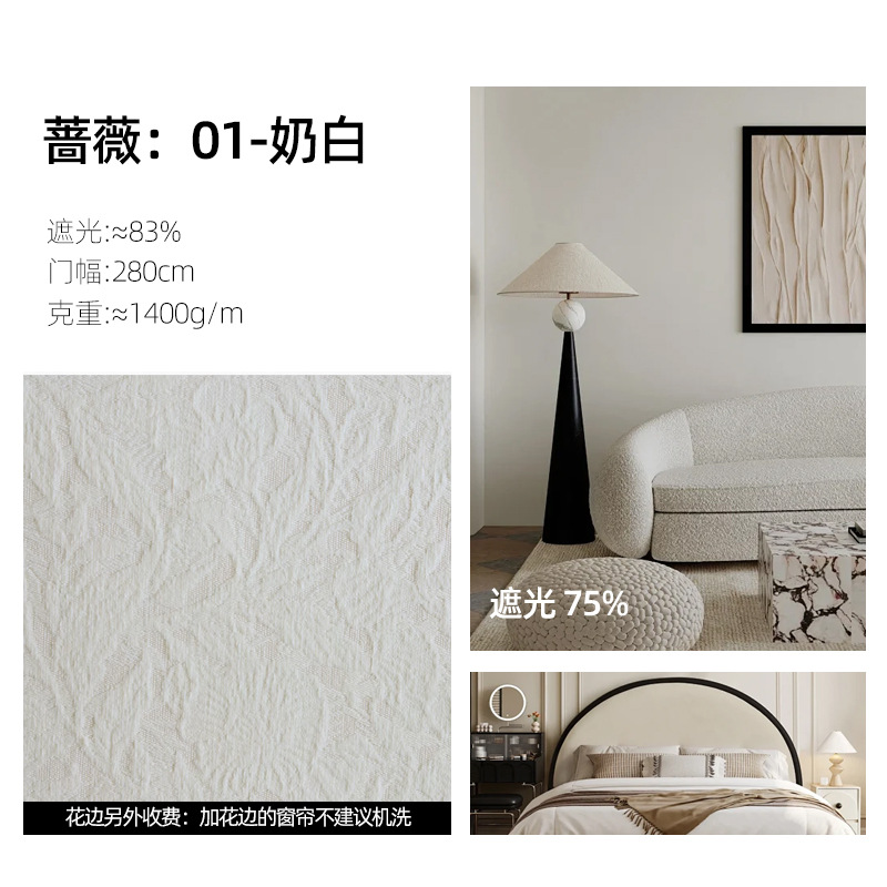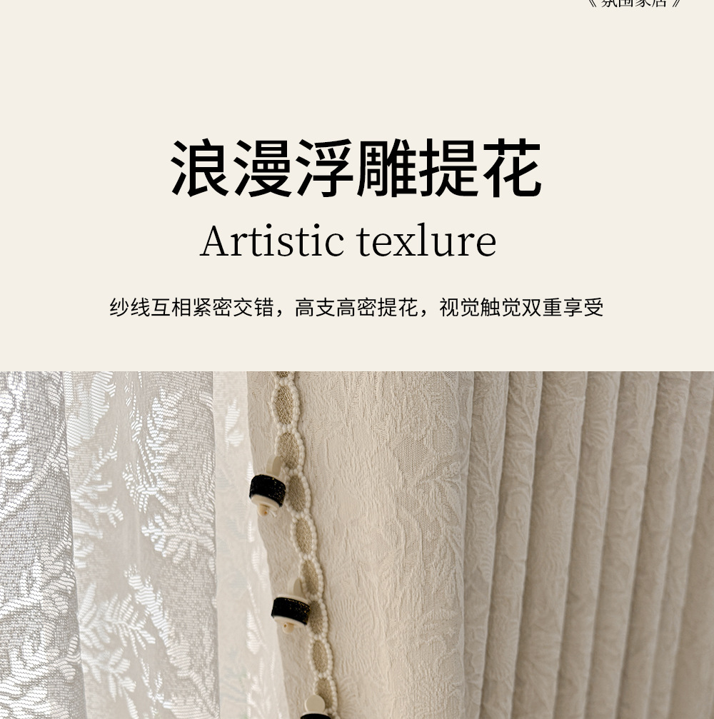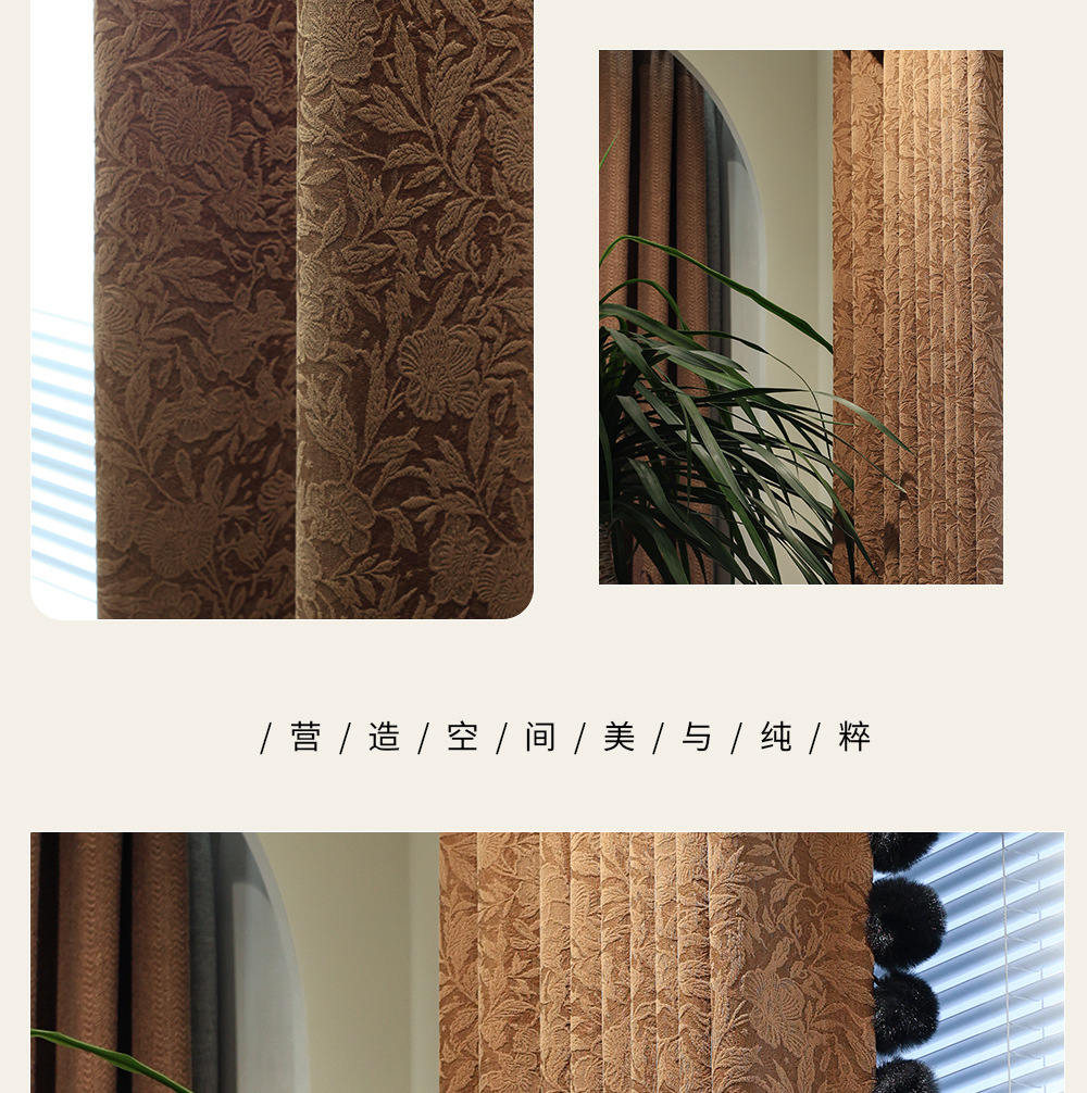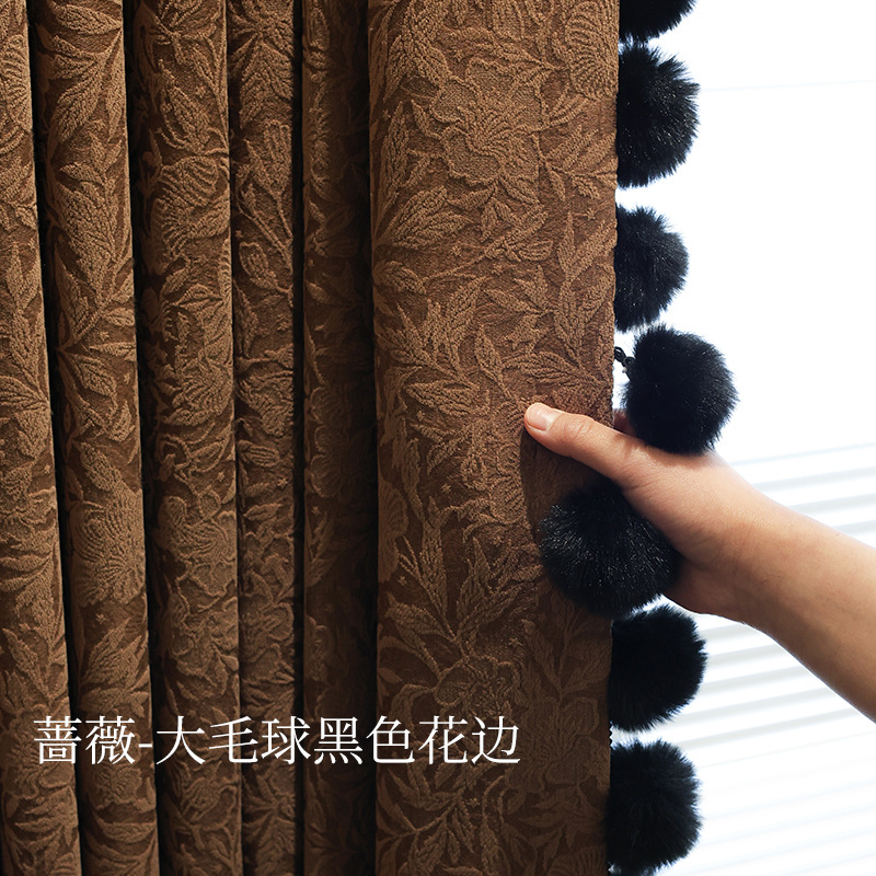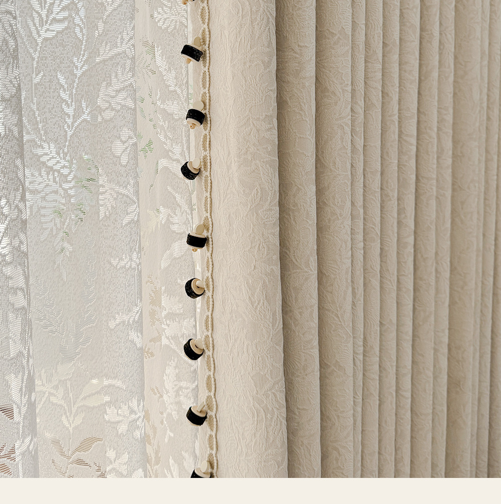 레트로 프렌치 커튼 크림 색상 차광 중세 스타일 Shaoxing Keqiao 셔닐 커튼 천 로즈 면 홈 섬유스토어 가기
