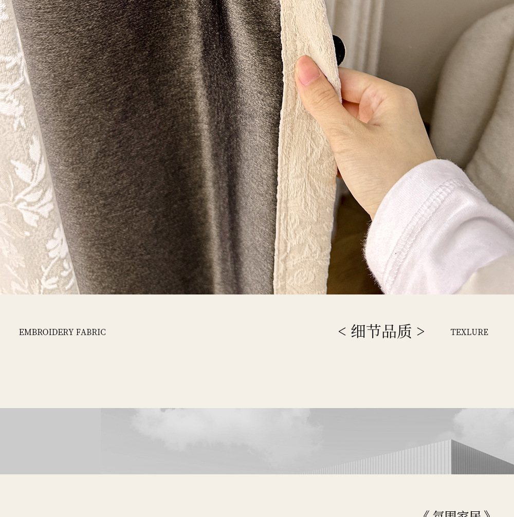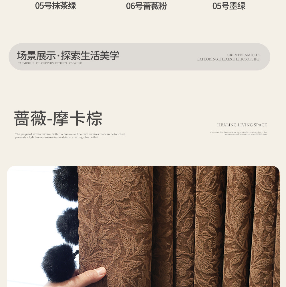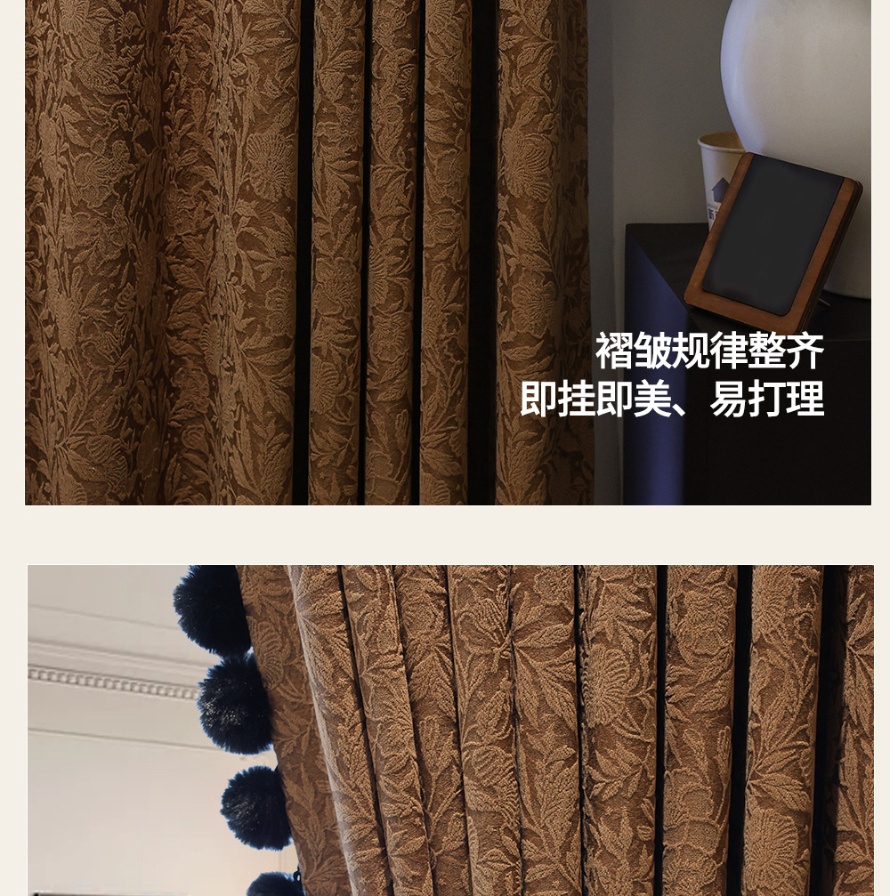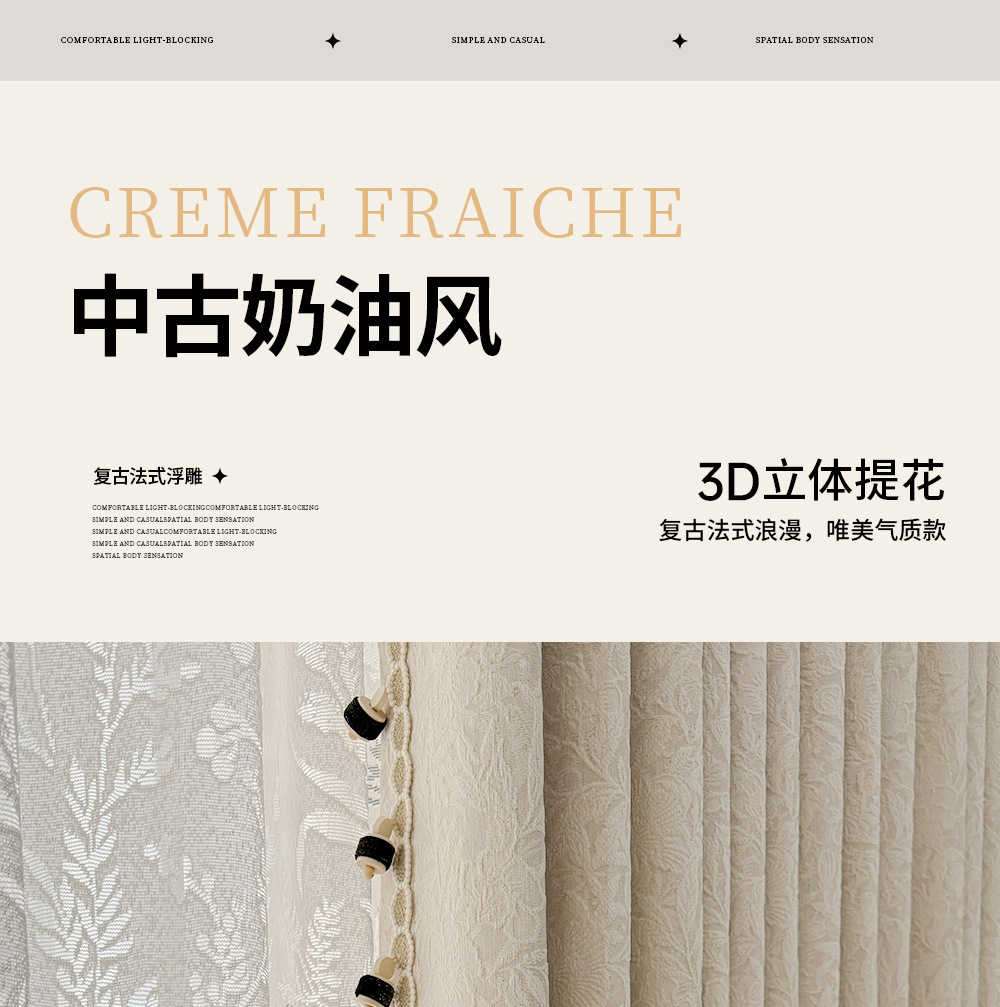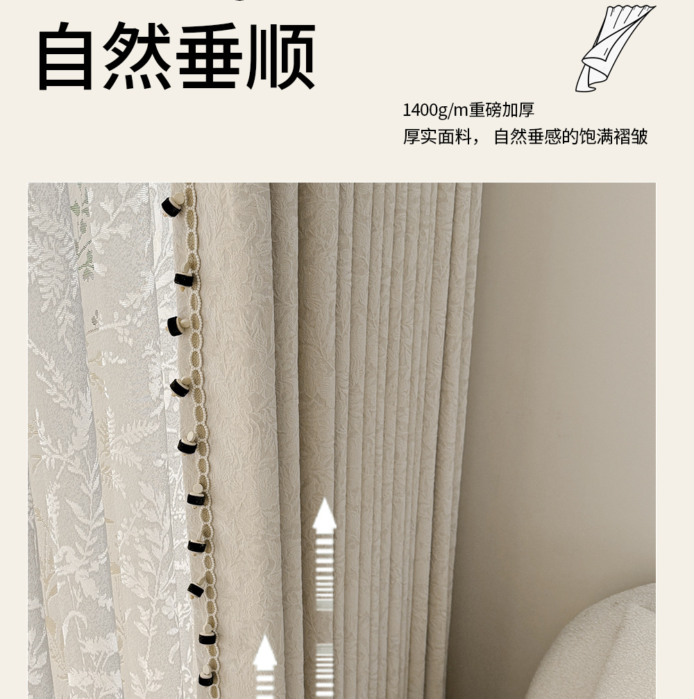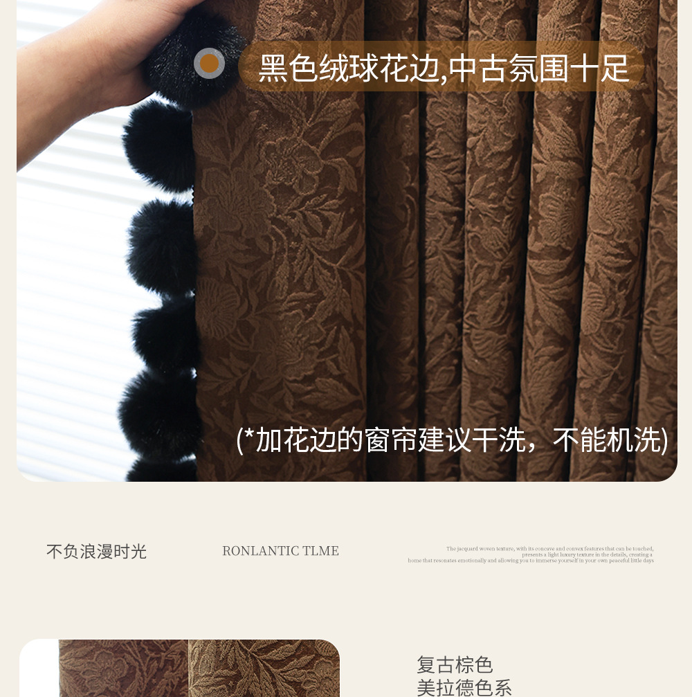 레트로 프렌치 커튼 크림 색상 차광 중세 스타일 Shaoxing Keqiao 셔닐 커튼 천 로즈 면 홈 섬유스토어 가기
