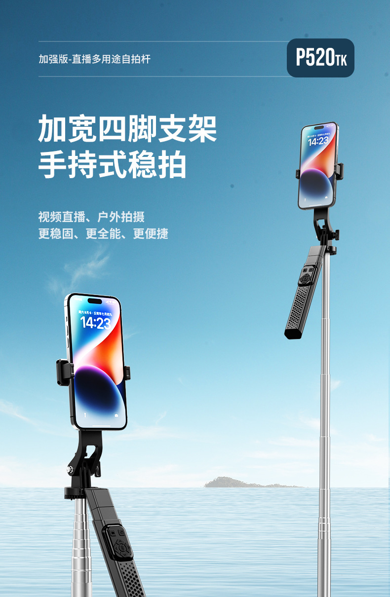 국경 간 P525TK 블루투스 셀카 폰 라이브 방송 스탠드 뷰티 사진 사진 미니 휴대용 셀카 스틱스토어 가기