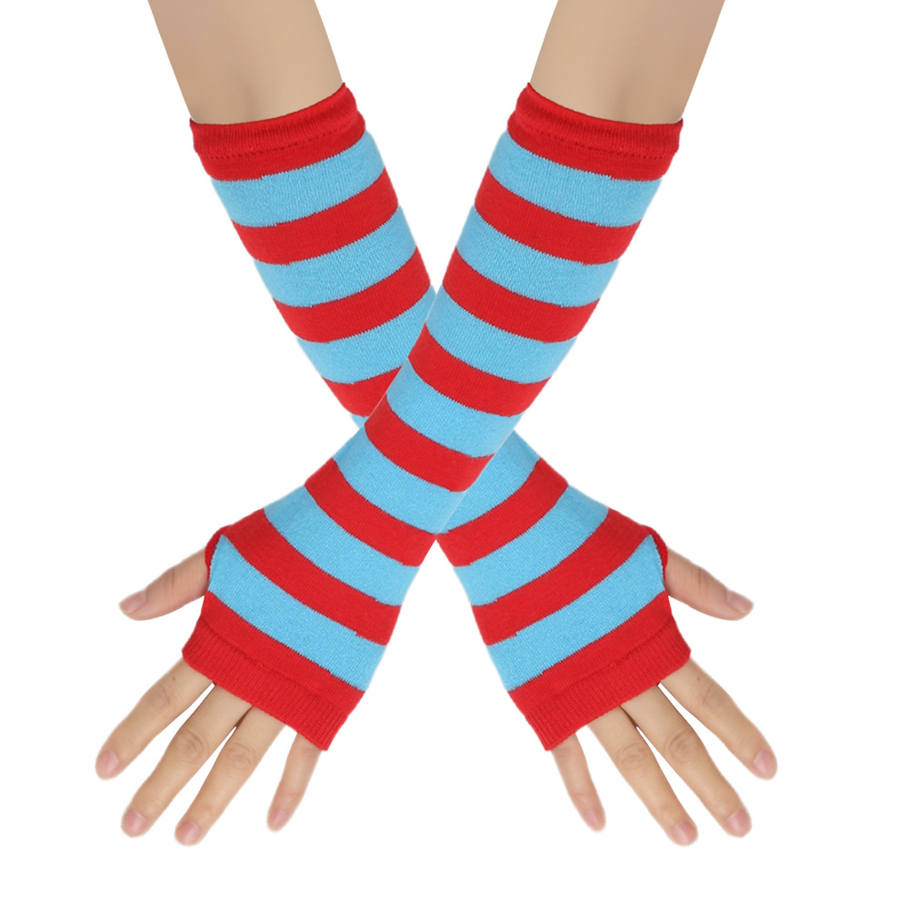 한국 스타일 긴 장갑 팔 커버 도매 cospla 애니메이션 흑백 줄무늬 핑거리스 코튼 긴 손목 커버