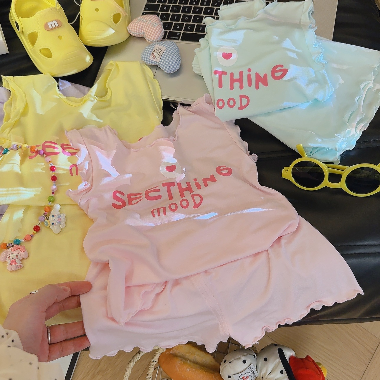 2025 소녀와 소년을위한 새로운 여름 부드러운 소녀 모달 정장 반팔 반바지 가정 의류스토어 가기