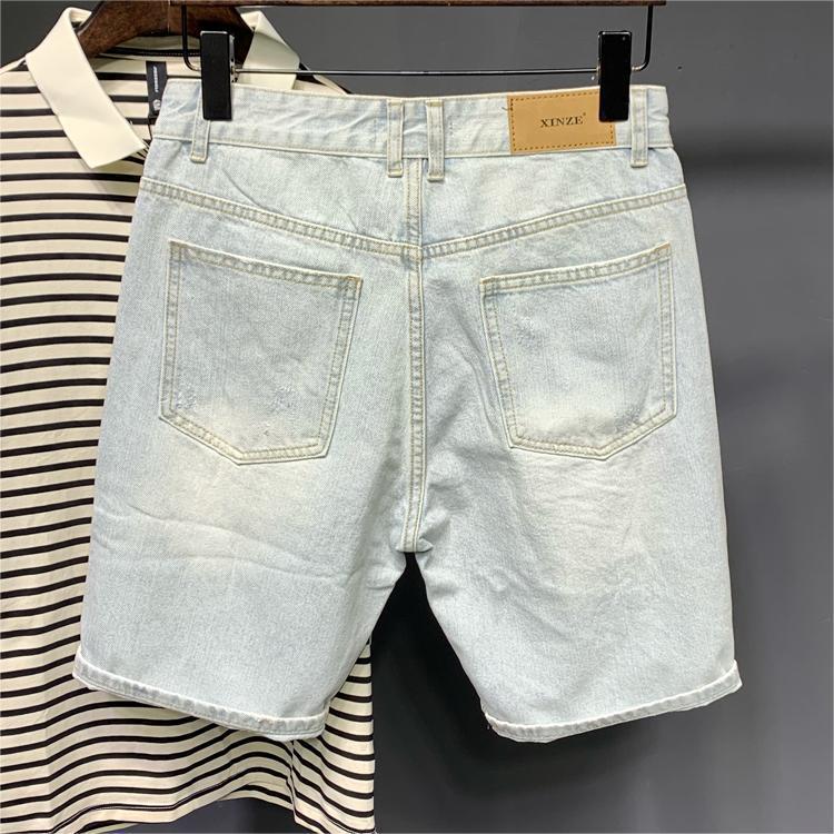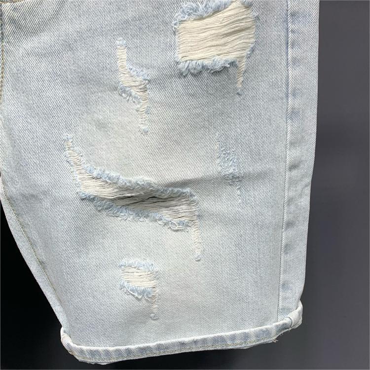 남성용 찢어진 청바지, 하이 스트리트 패션 브랜드, 밝은 색상의 복고풍 베이비 헌터 여름 얇고 멋진 바이브 스타일 반바지