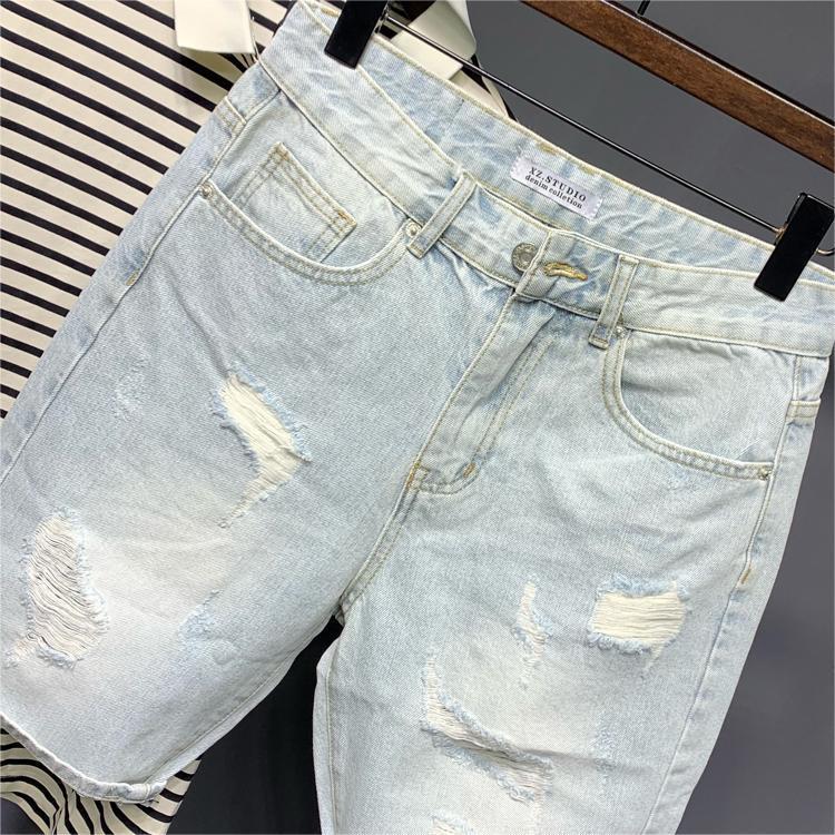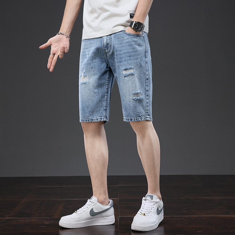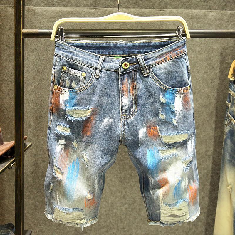 남성용 찢어진 청바지, 하이 스트리트 패션 브랜드, 밝은 색상의 복고풍 베이비 헌터 여름 얇고 멋진 바이브 스타일 반바지스토어 가기