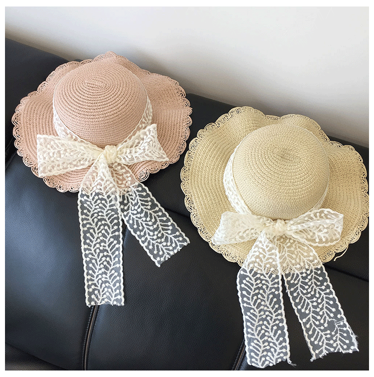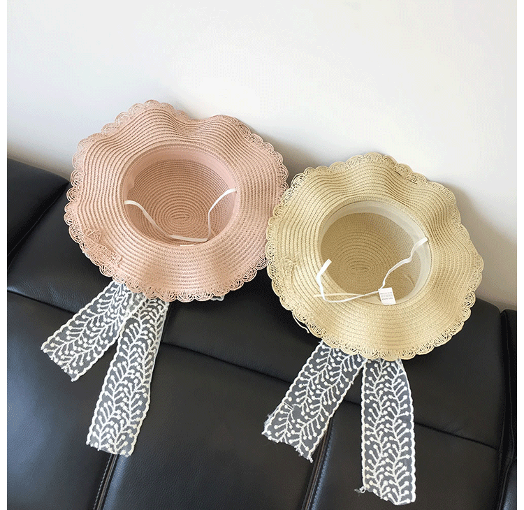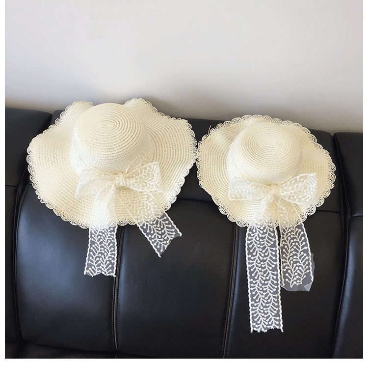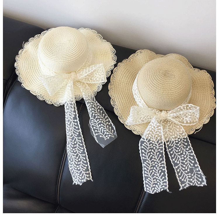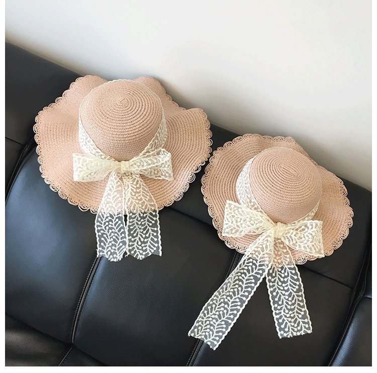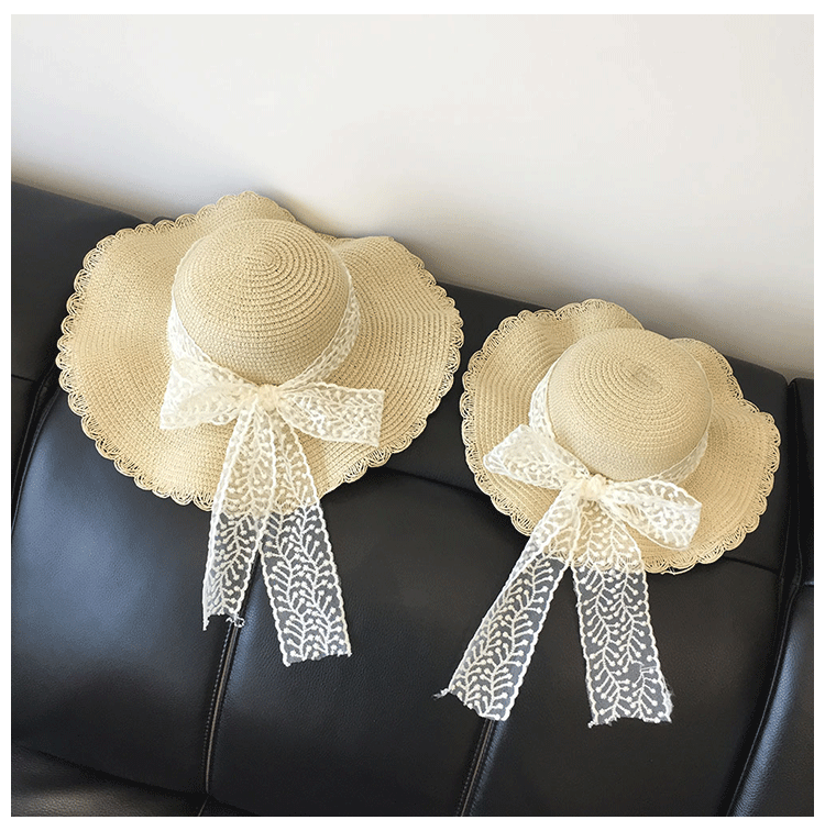 봄과 여름 부모-자식 여행 밀짚 모자 야외 태양 보호 통기성 밀짚 모자 물결 모양의 가장자리 큰 챙 활 태양 모자