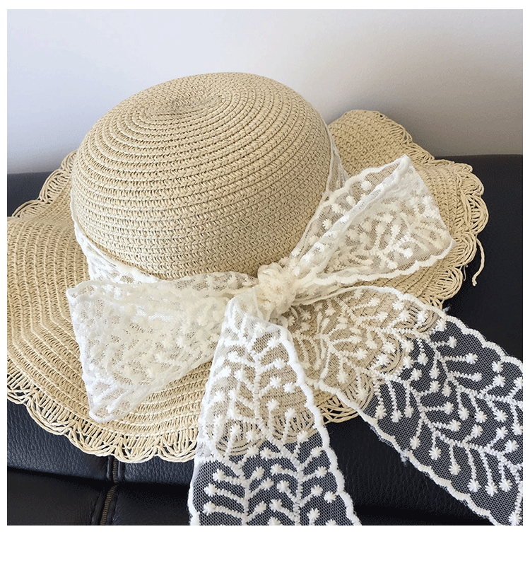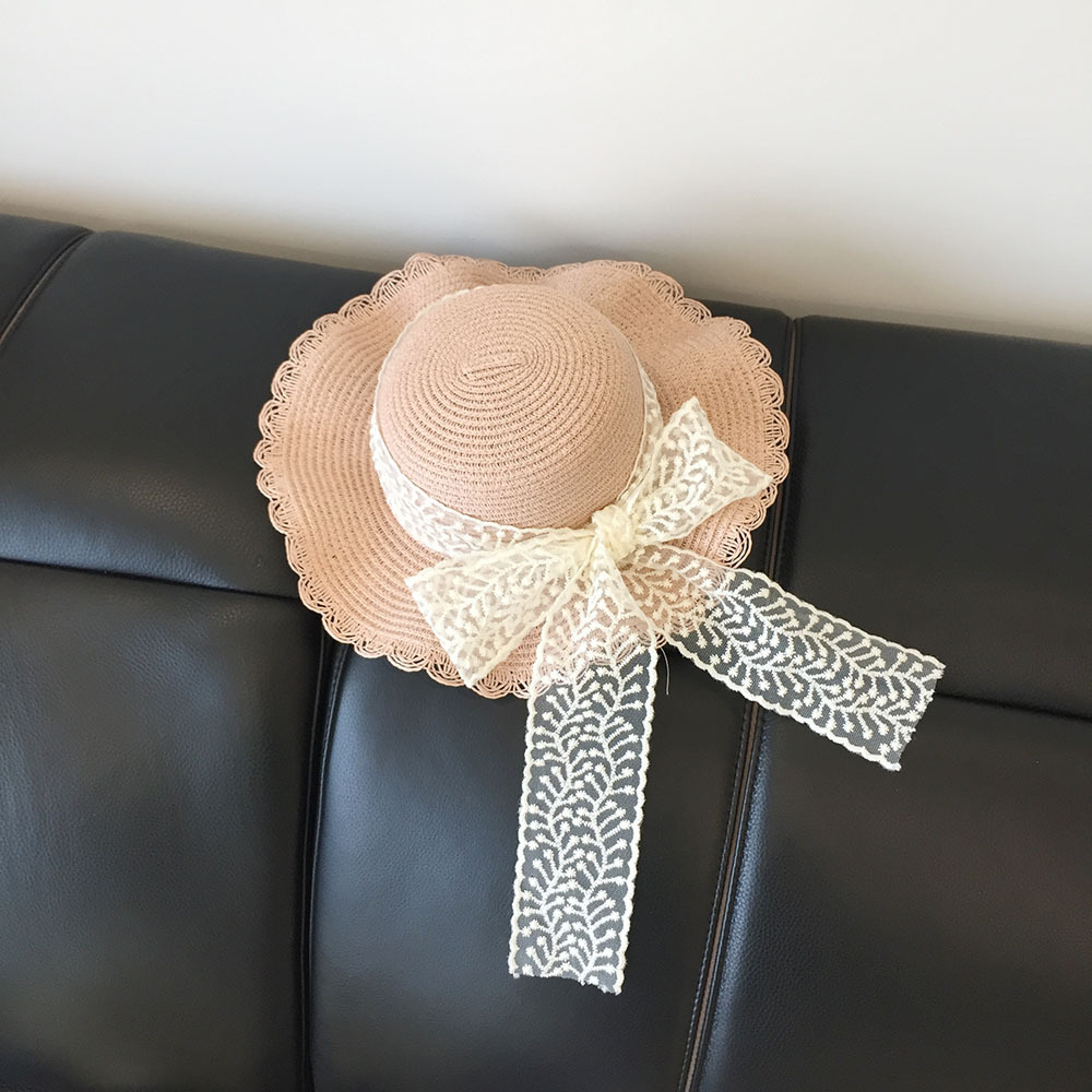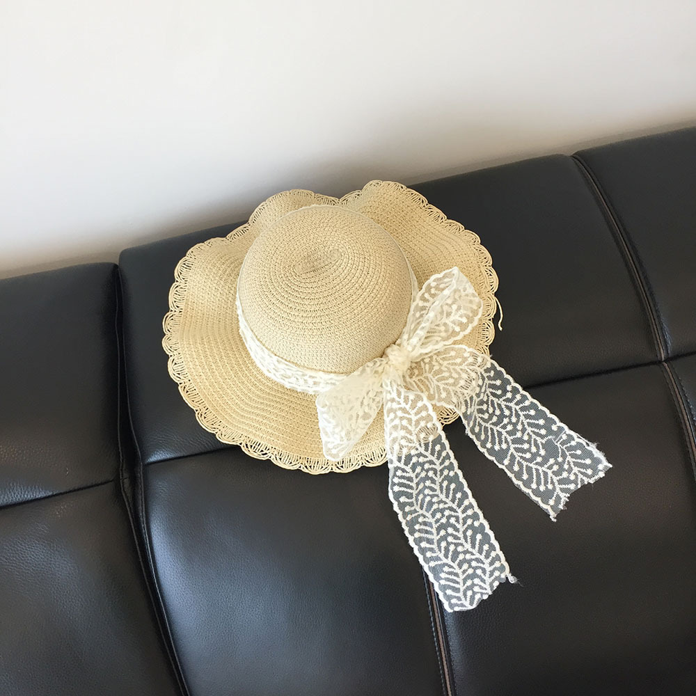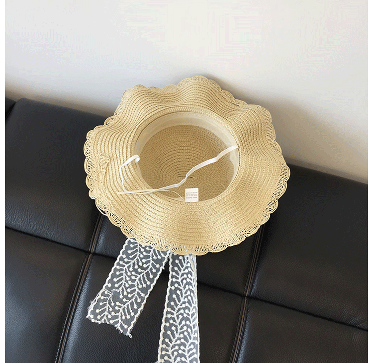 봄과 여름 부모-자식 여행 밀짚 모자 야외 태양 보호 통기성 밀짚 모자 물결 모양의 가장자리 큰 챙 활 태양 모자