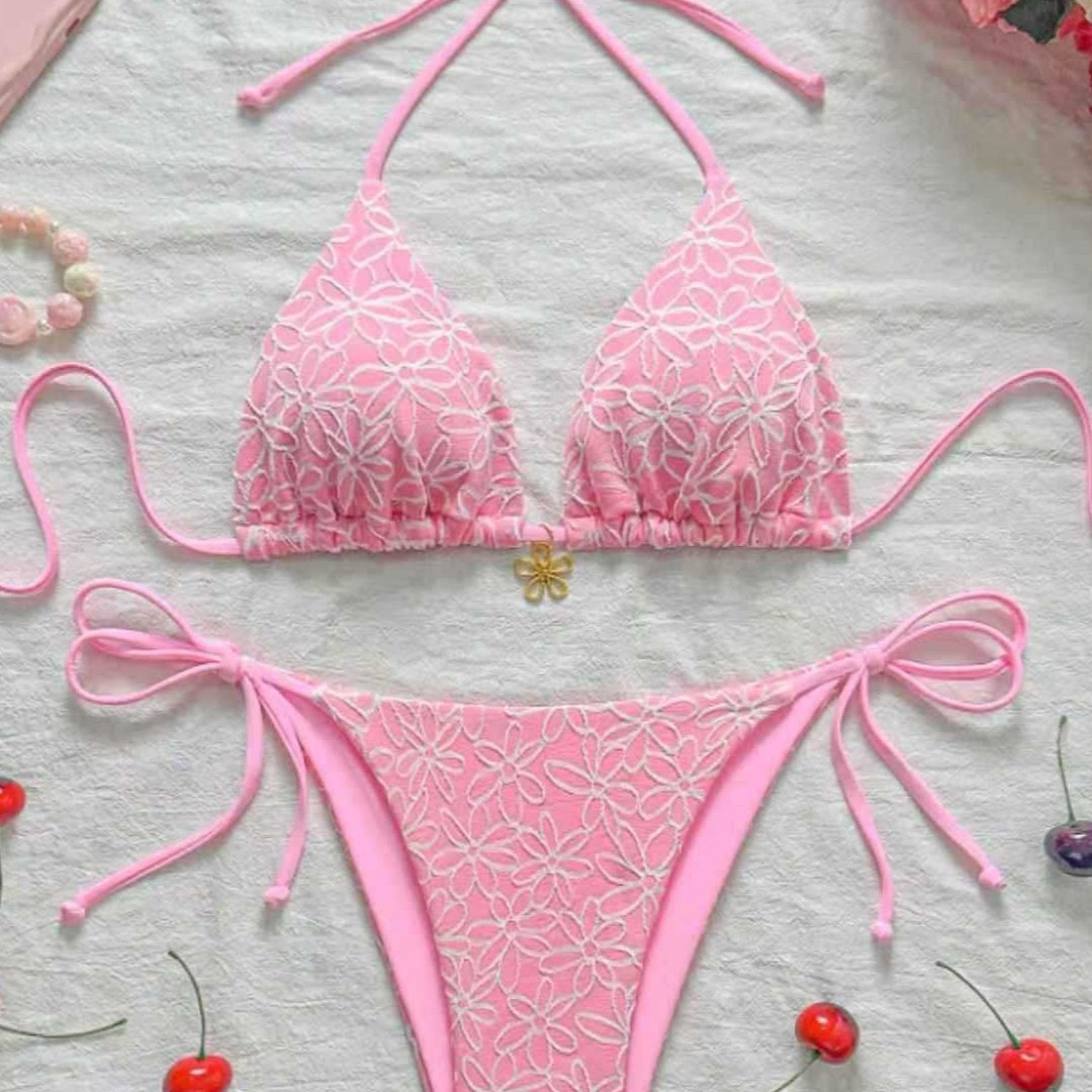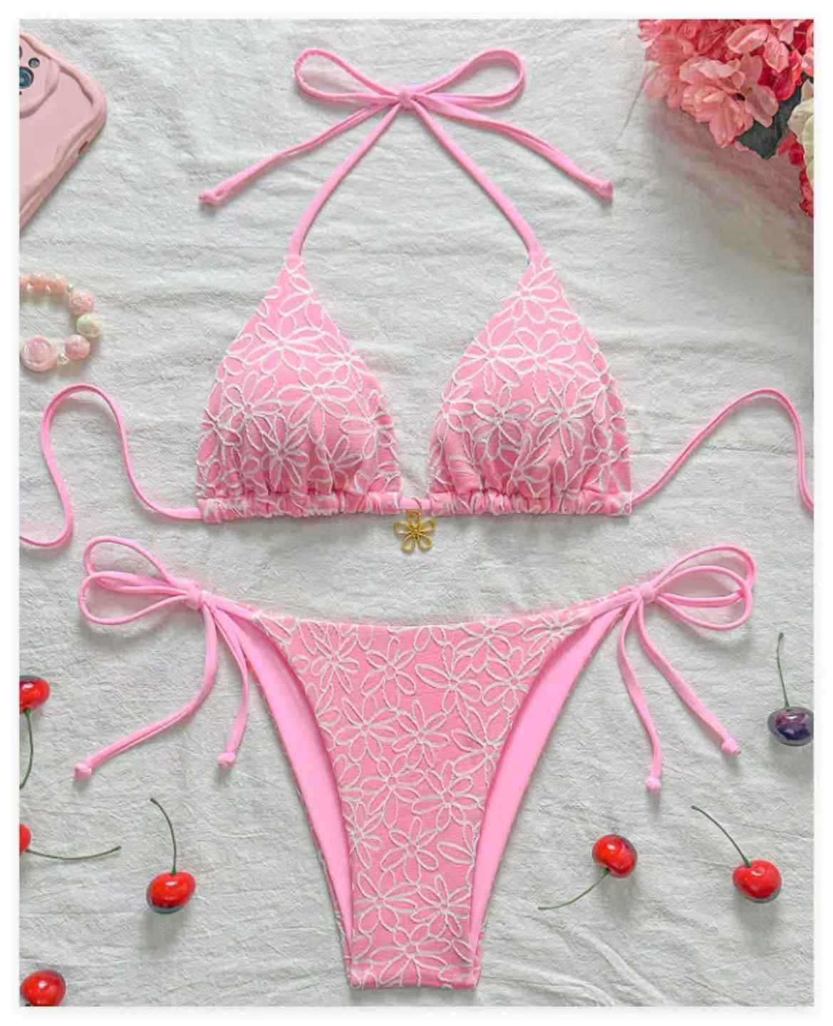 2025 크로스보더 새로운 섹시한 수영복 세트 작은 가슴 푸시 업 레이스 업 유럽과 미국의 온천 휴가 비키니 수영복