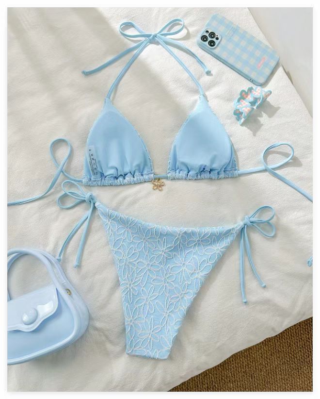 2025 크로스보더 새로운 섹시한 수영복 세트 작은 가슴 푸시 업 레이스 업 유럽과 미국의 온천 휴가 비키니 수영복스토어 가기