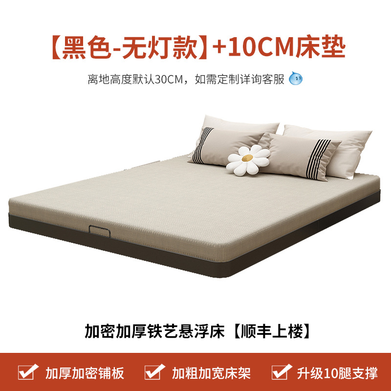 • 조명이 없는 블랙 싱글 침대 + 10cm 매트리스 [두꺼워지고 강화됨]