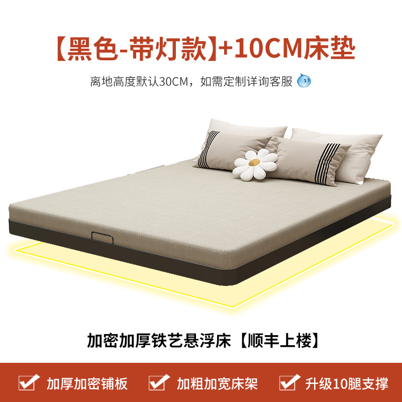 • 조명 + 10cm 매트리스가 포함된 블랙 싱글 침대 [두꺼워지고 강화됨]