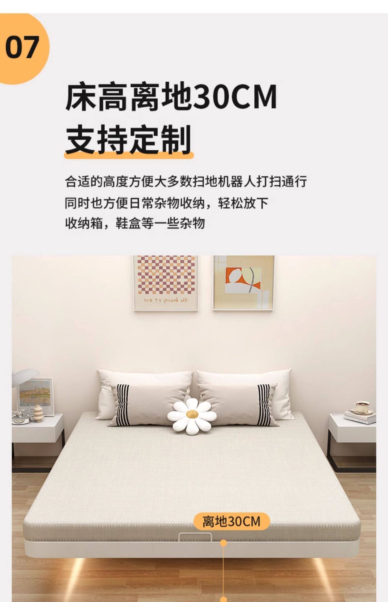 • 조명이 없는 흰색 싱글 침대 + 10cm 매트리스 [두꺼워지고 강화됨]