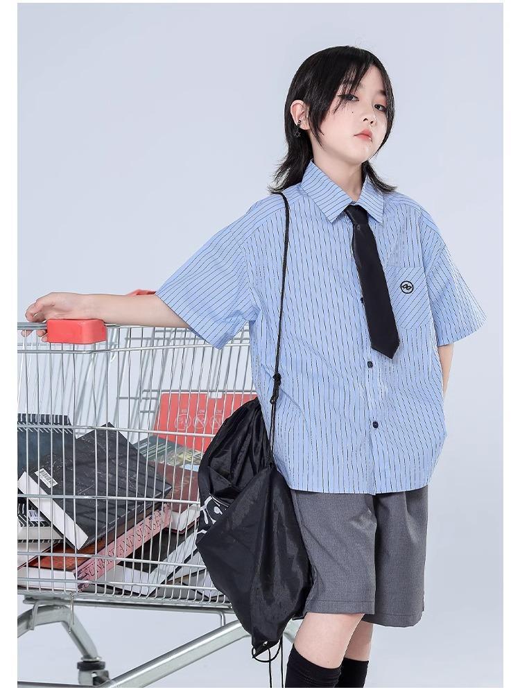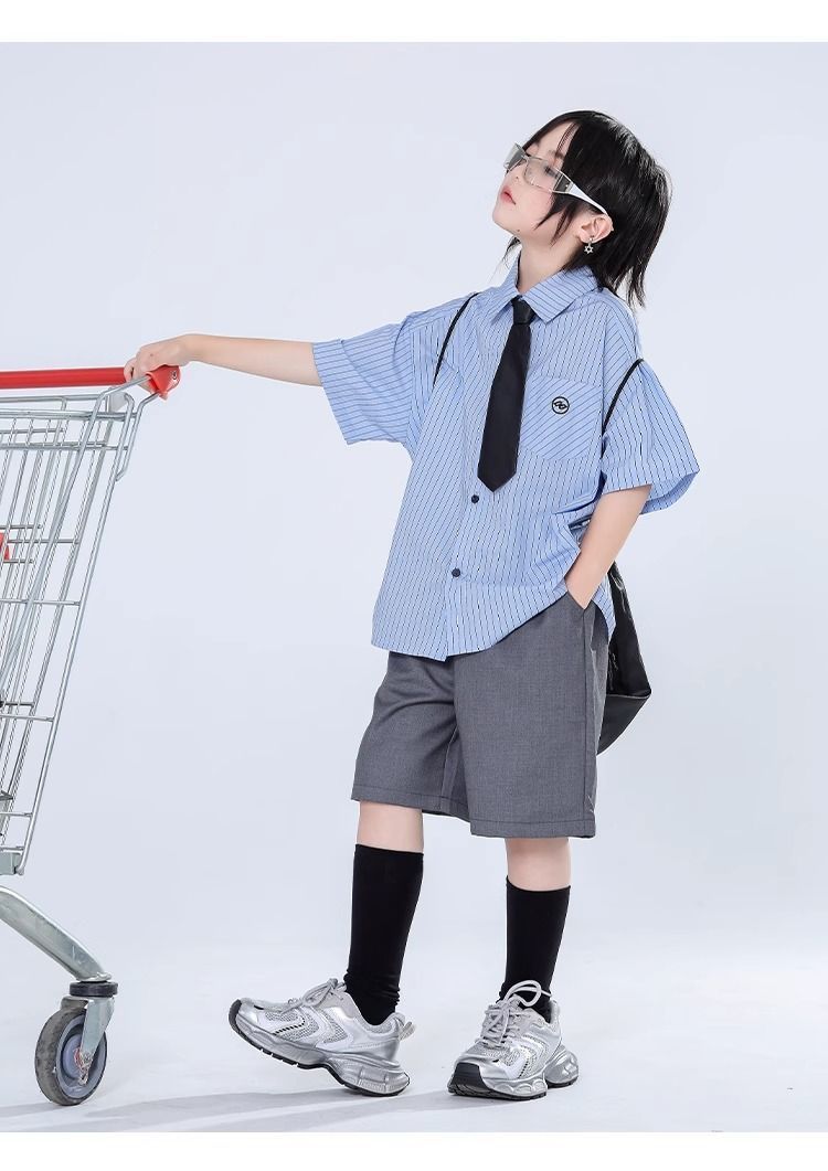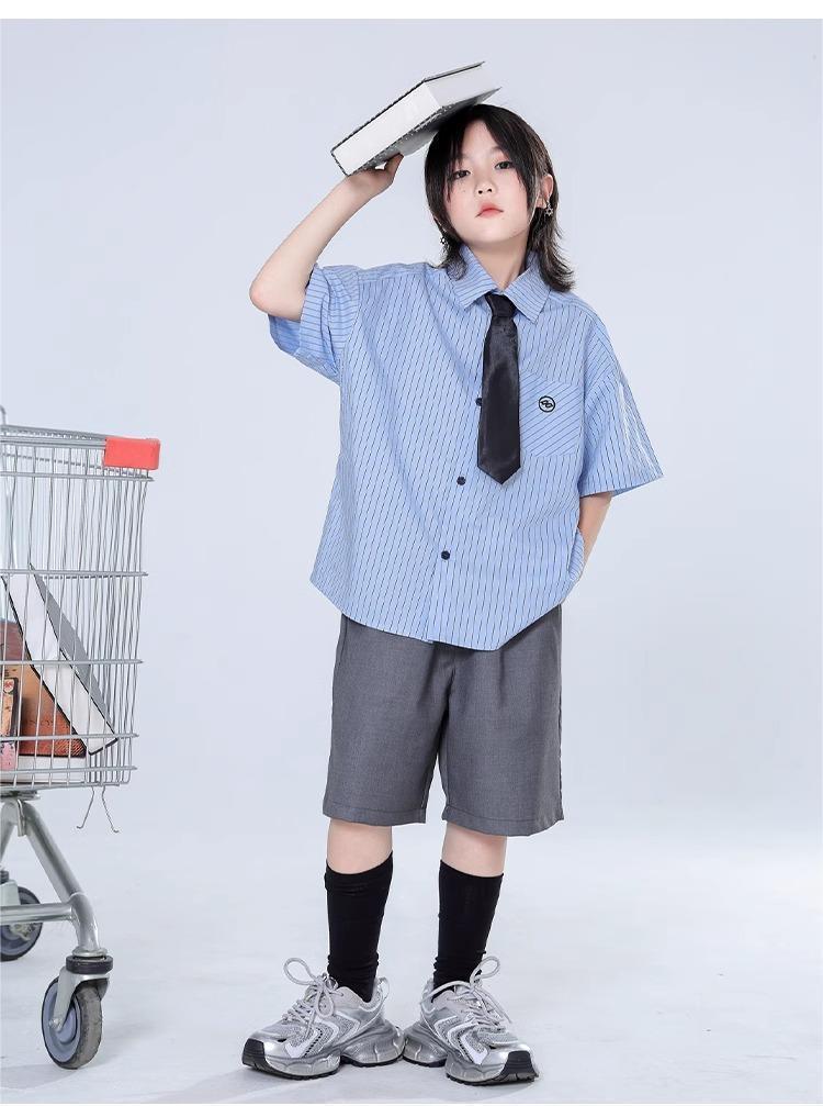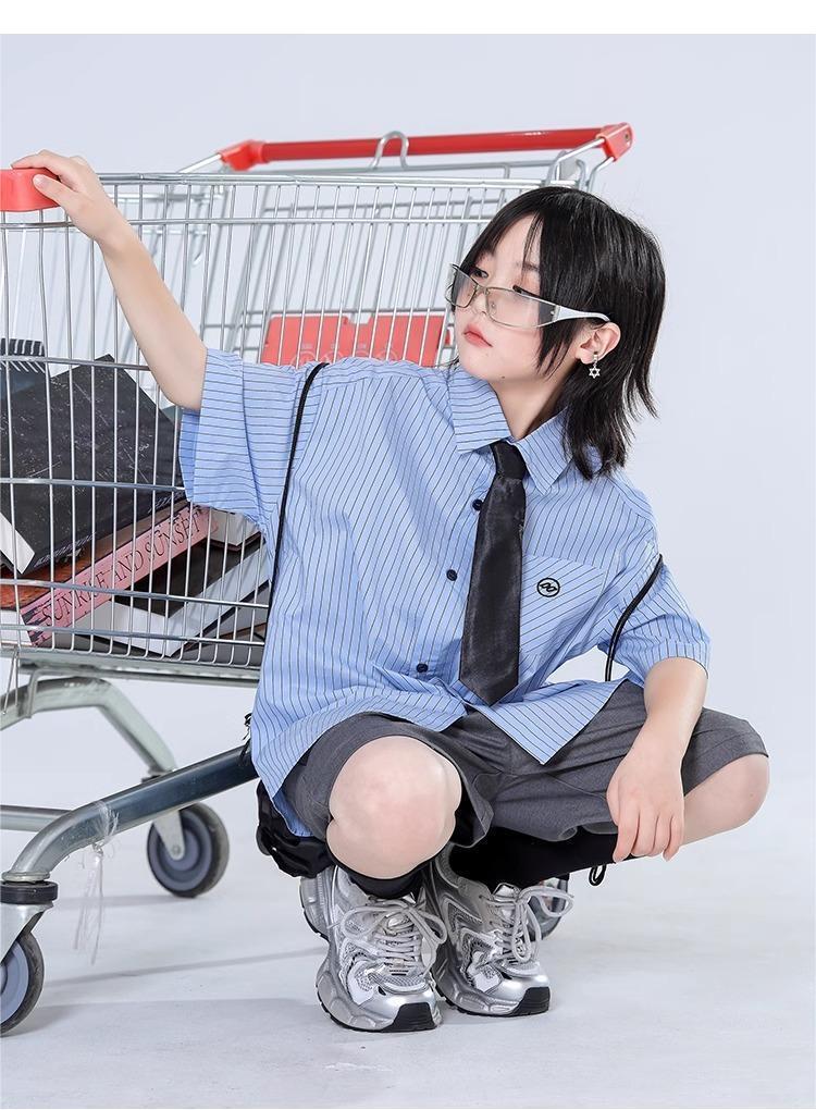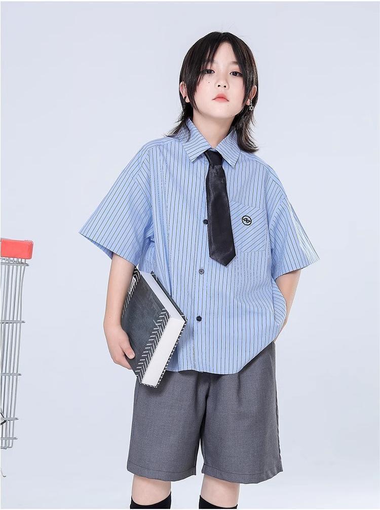 소년 대학 스타일 여름 옷 2025 새로운 어린이 멋진 반팔 셔츠 아기 소년 유행 여름 얇은 셔츠스토어 가기