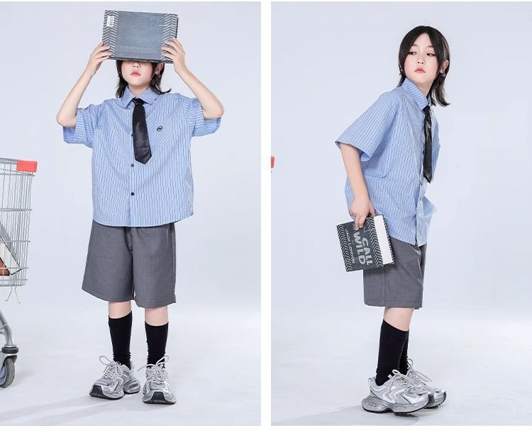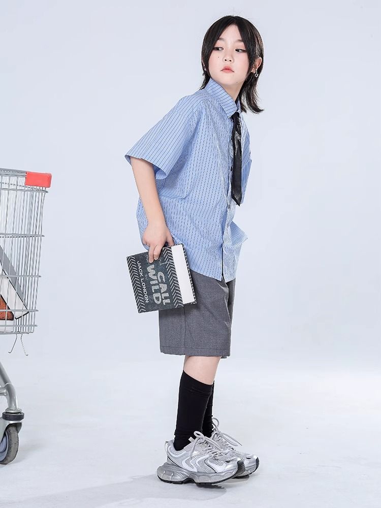 소년 대학 스타일 여름 옷 2025 새로운 어린이 멋진 반팔 셔츠 아기 소년 유행 여름 얇은 셔츠