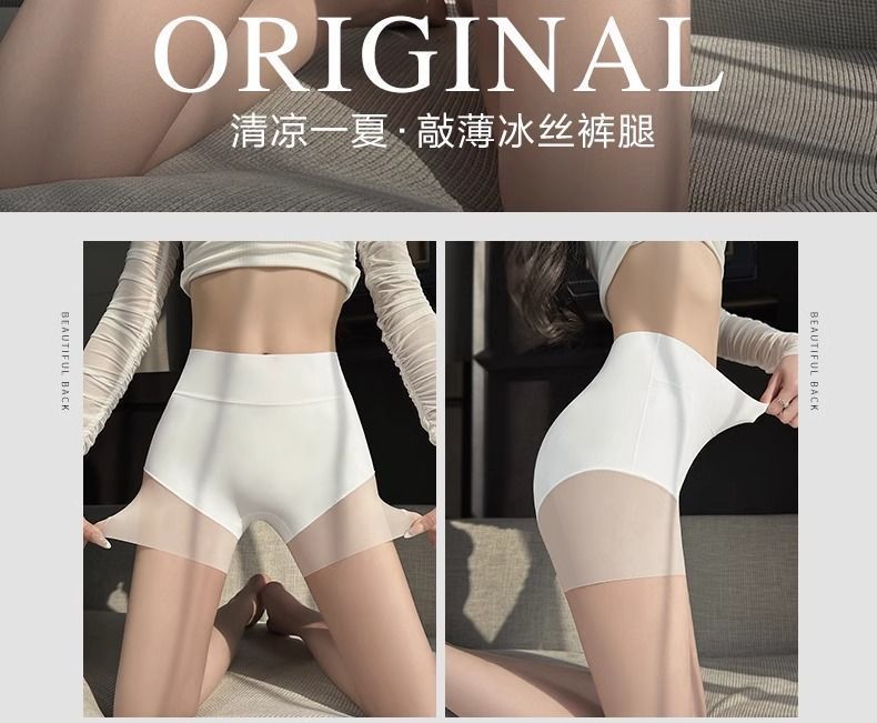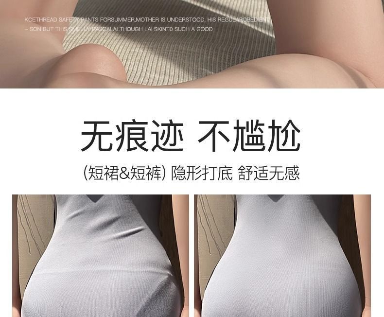 2025 얇은 노출 방지 하이 웨이스트 배꼽 조절 투인원 안전 반바지 여름 심리스 속옷 여성용 아이스 실크 통기성 여성용스토어 가기