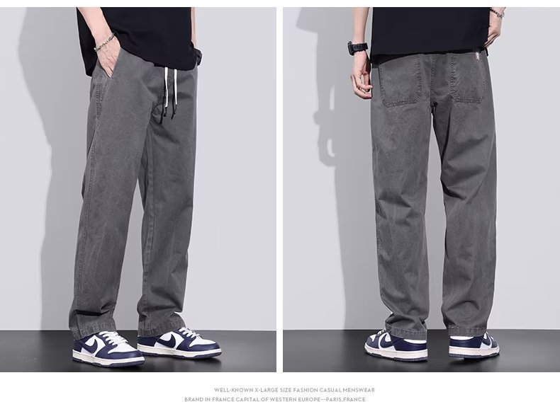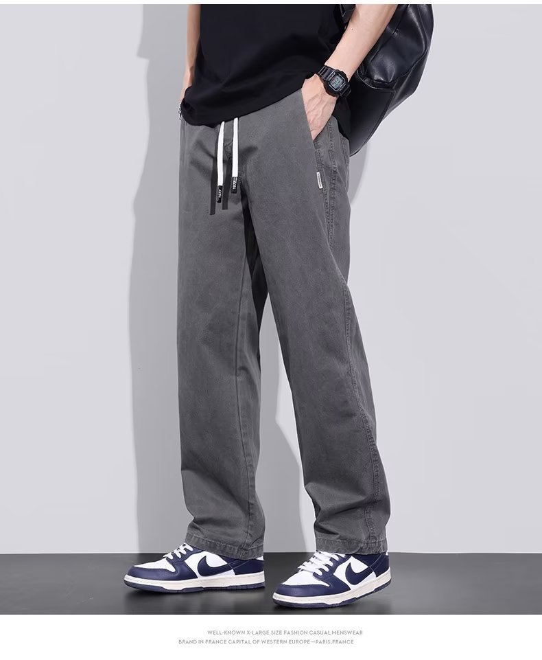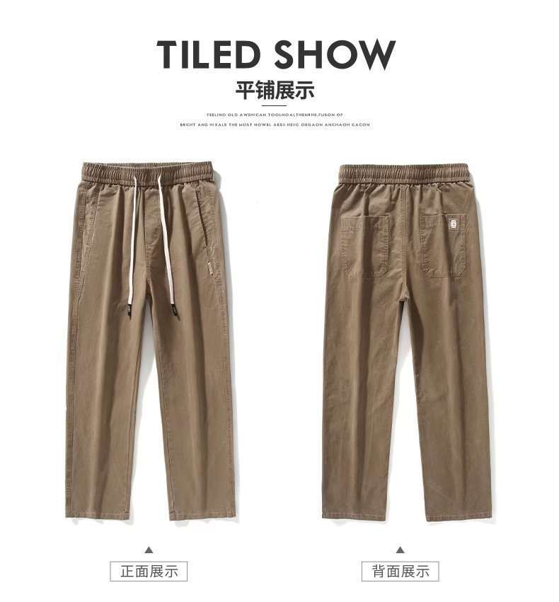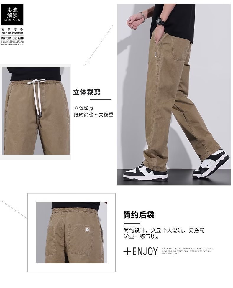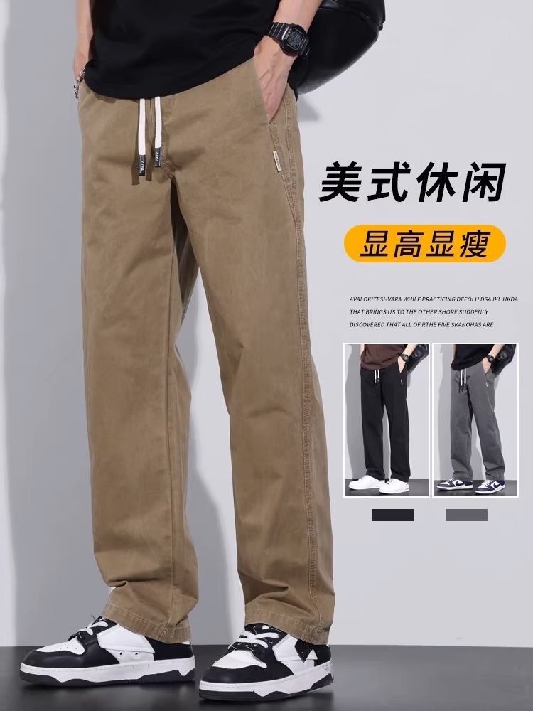2025 새로운 트렌디 캐주얼 바지 스포츠 스트레이트 루즈 하이 엔드 남성 바지 봄, 가을 복고풍 작업복 바지스토어 가기