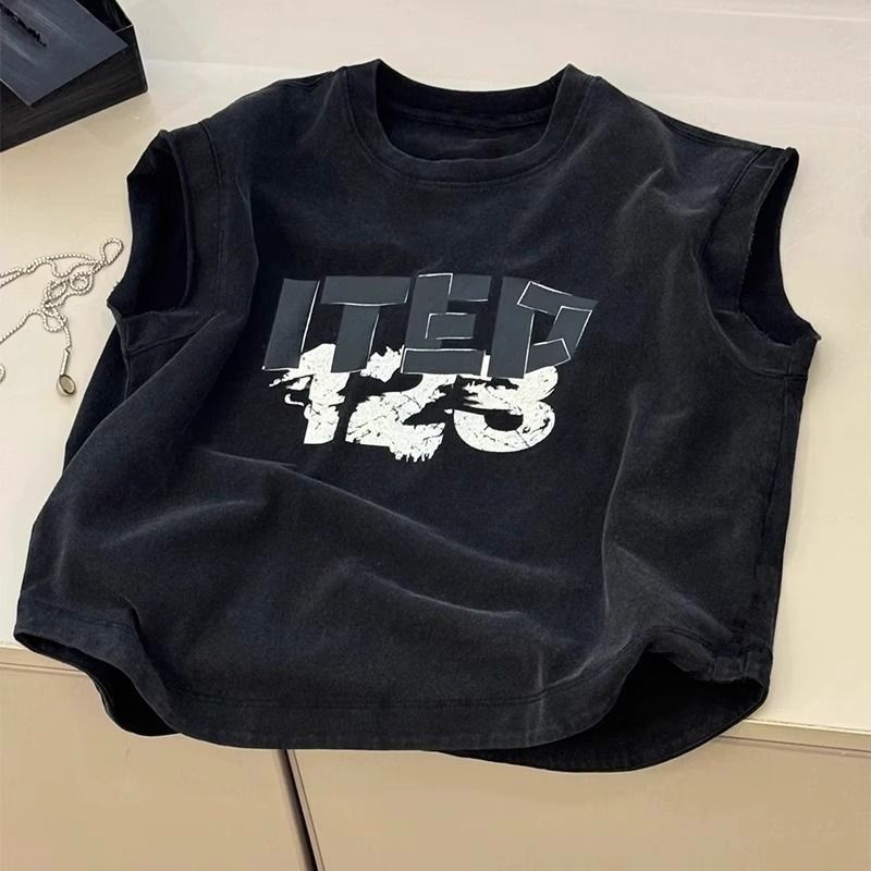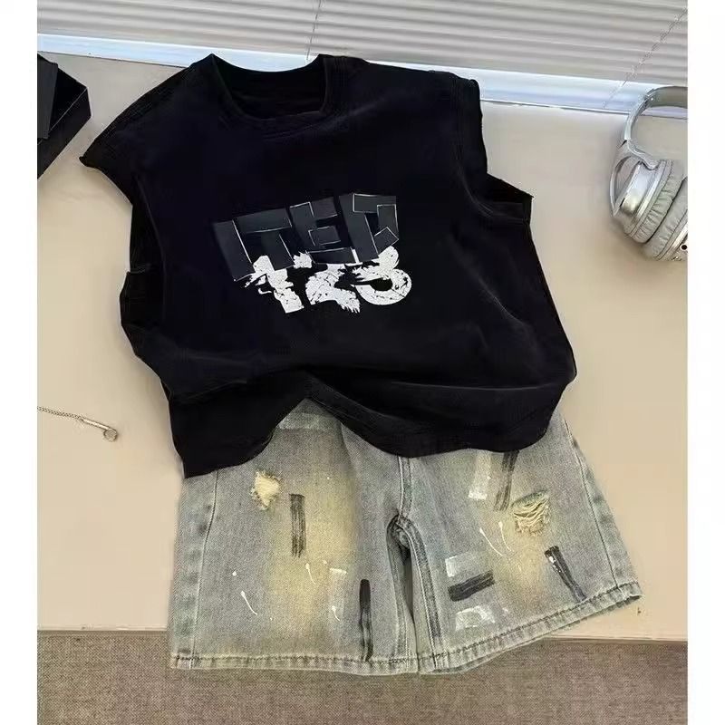 소년 니트 조끼 정장 여름 한국 스타일 멋진 민소매 조끼 어린이 검은 탑 여름 새로운 스타일 2025스토어 가기