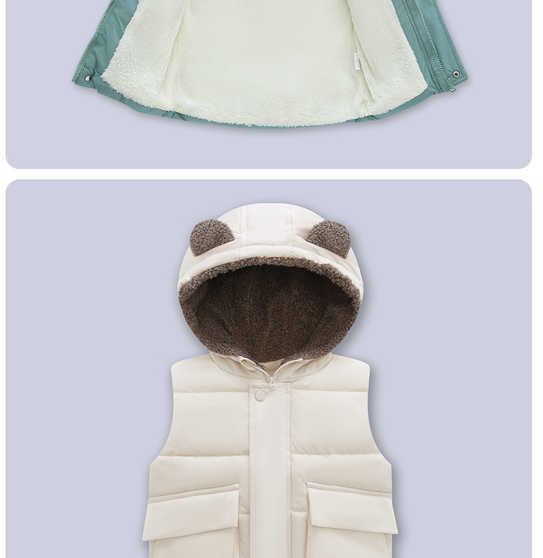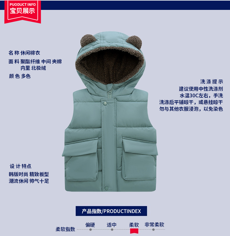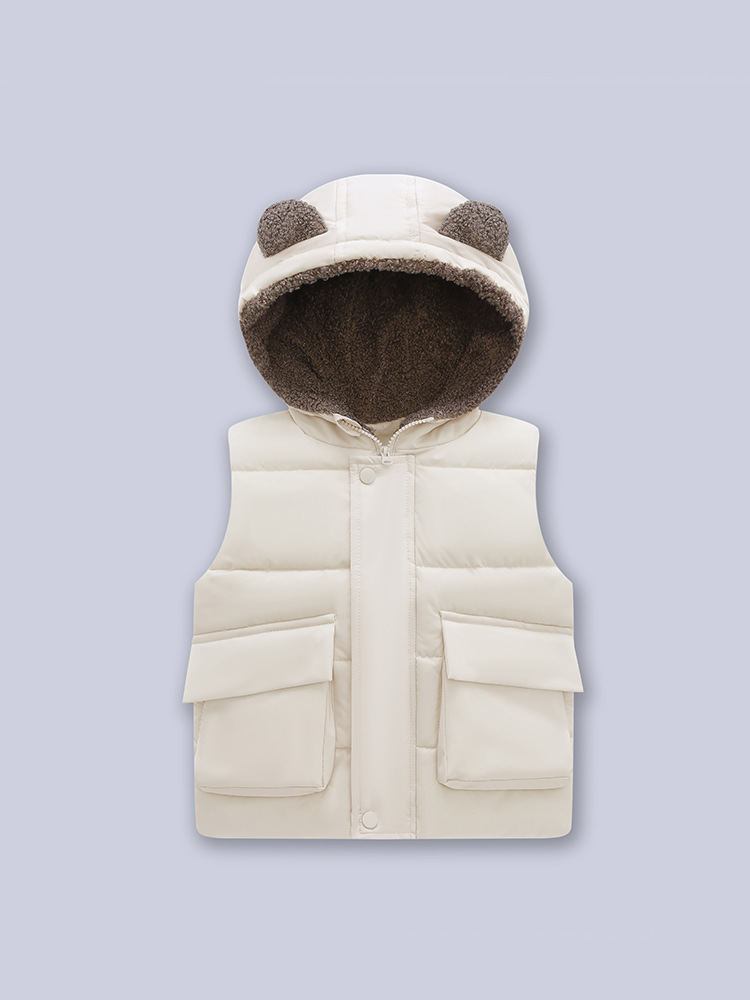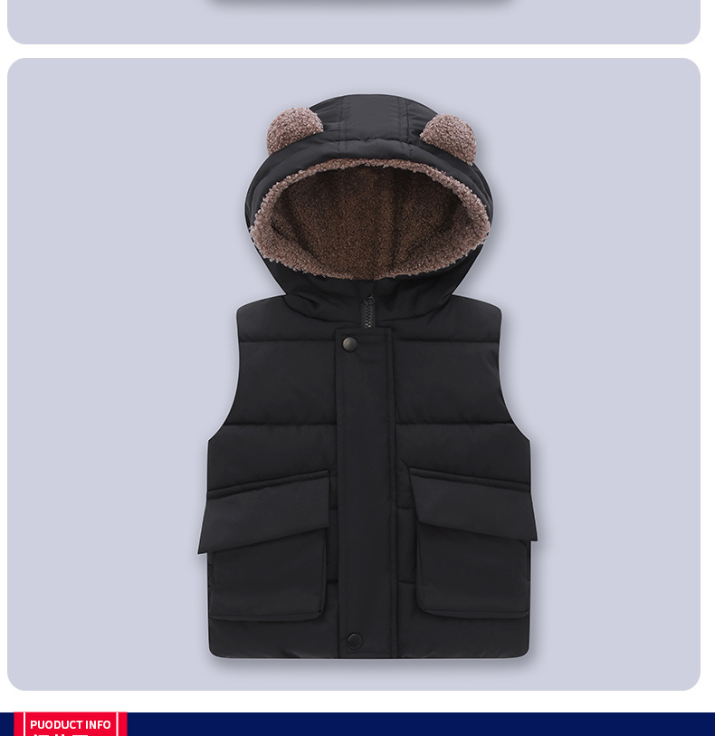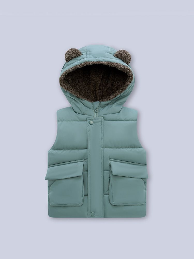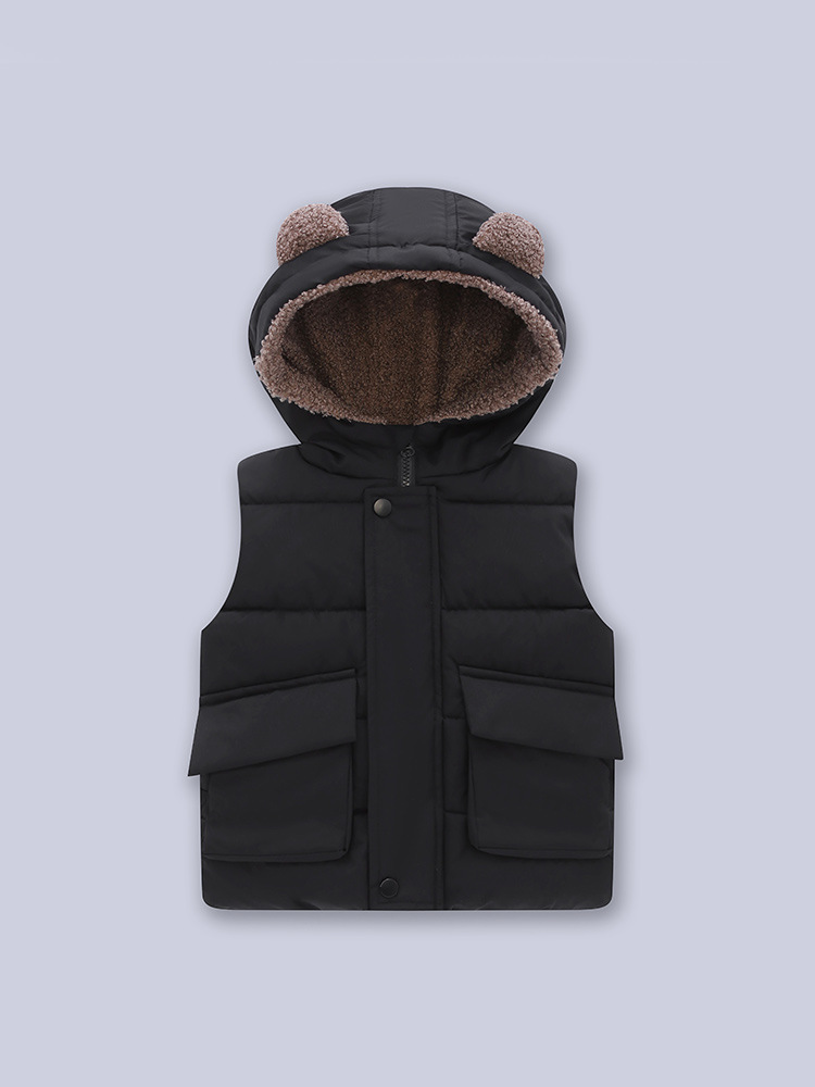 대외 무역 2025 아동 의류 면 코트 가을, 겨울 플러스 벨벳 따뜻한 소년과 소녀를위한 후드 조끼 와이드 숄더 조끼 크로스 보더