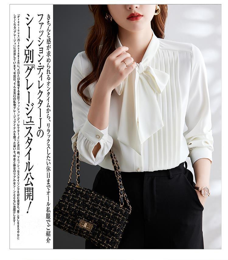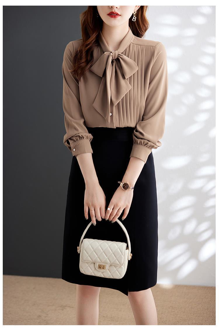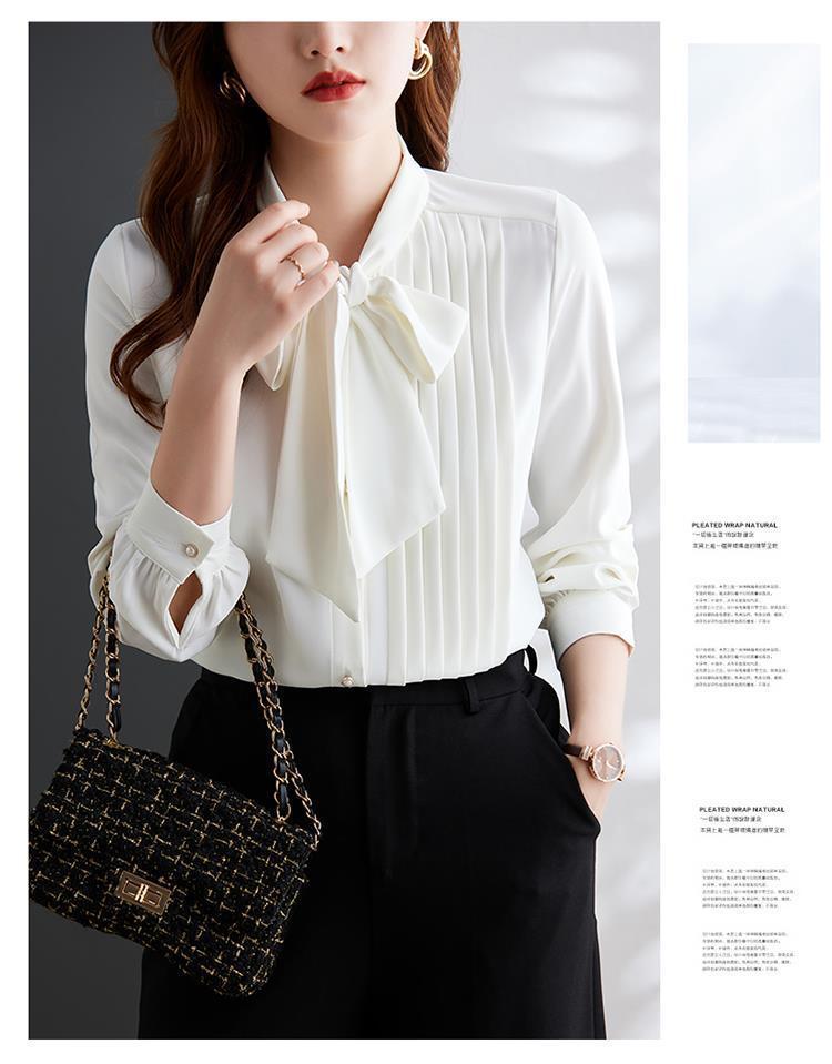 재고 있음 2025 새로운 프랑스 통근 셔츠 레이스 업 쉬폰 긴팔 셔츠 여성용 나비 넥 불규칙 탑스토어 가기