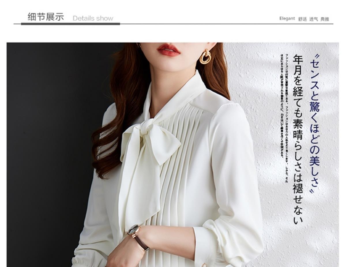 재고 있음 2025 새로운 프랑스 통근 셔츠 레이스 업 쉬폰 긴팔 셔츠 여성용 나비 넥 불규칙 탑
