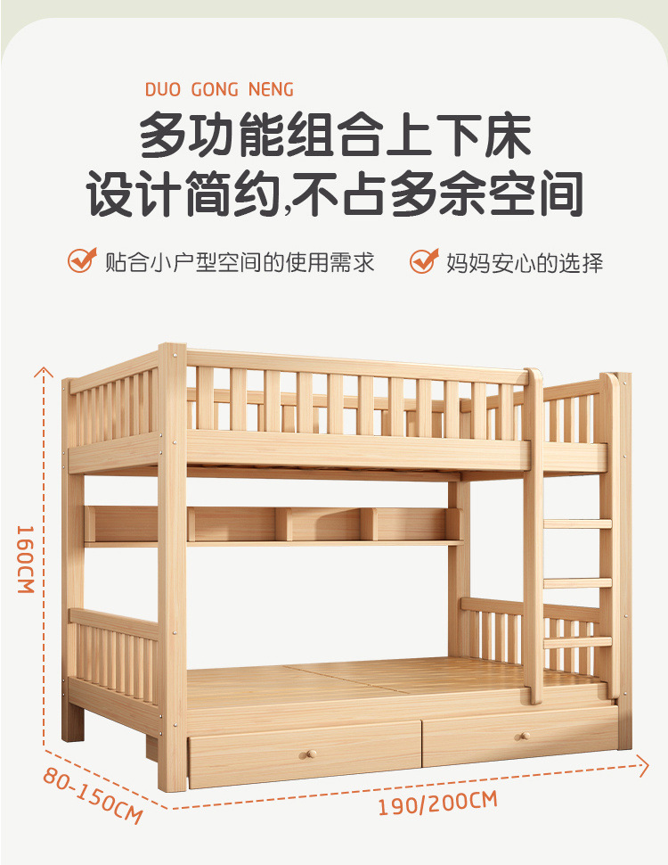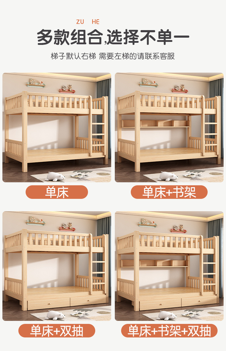 이층침대, 원목 두꺼운 가정용 어린이 침대, 높낮이 이층침대, 성인용 더블 침대, 기숙사 이층침대
