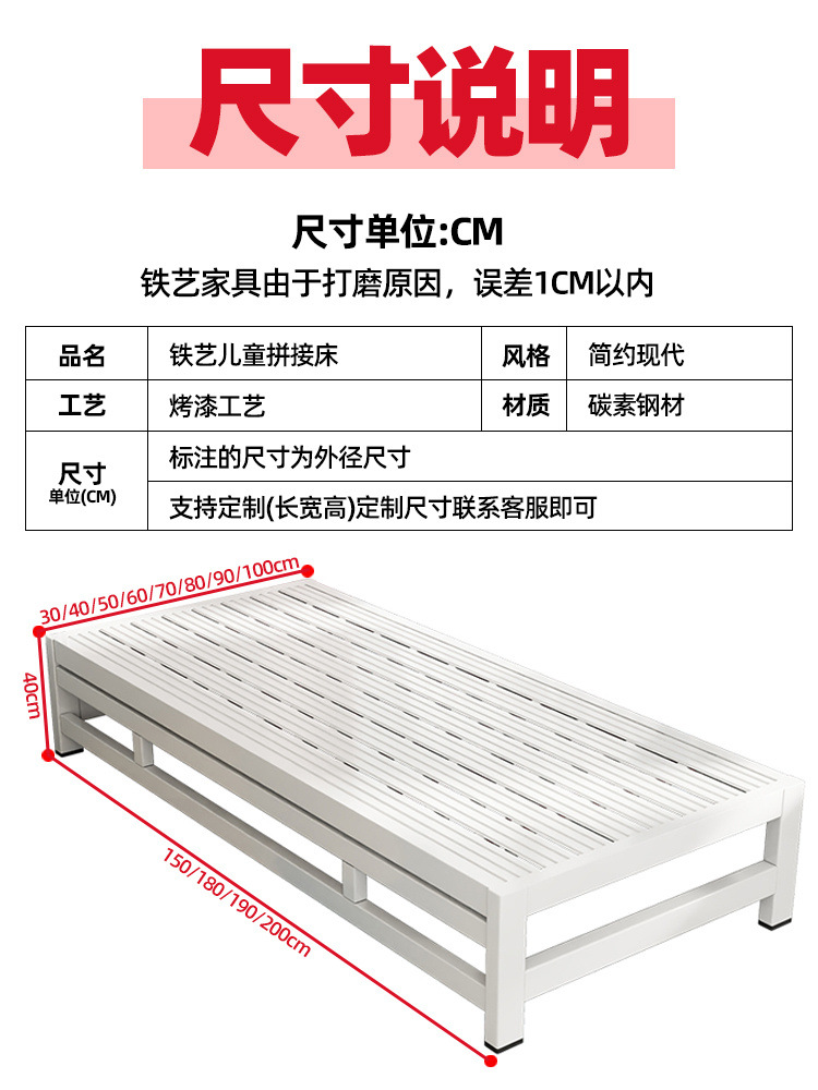 가드레일이 있는 철제 어린이 접합 침대, 소형 침대, 싱글 침대, 아기 소년 소녀 공주 침대 옆 침대, 넓은 침대