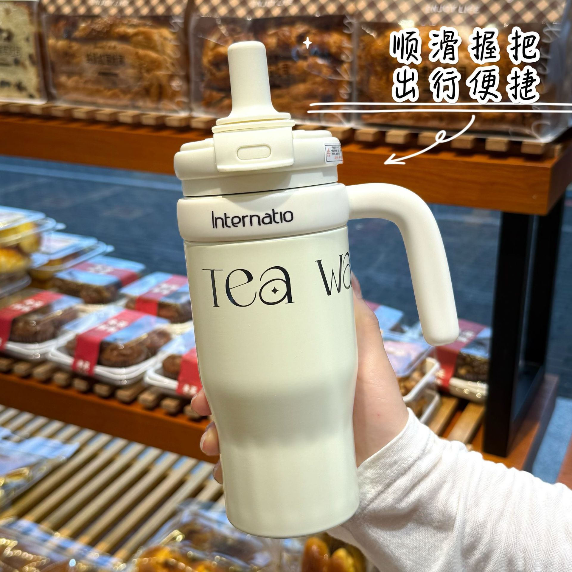 란반 보온병 컵 대용량 인터넷 연예인 학생 커피 컵 손잡이가 있는 간단한 고급 사무실 밀짚 컵스토어 가기
