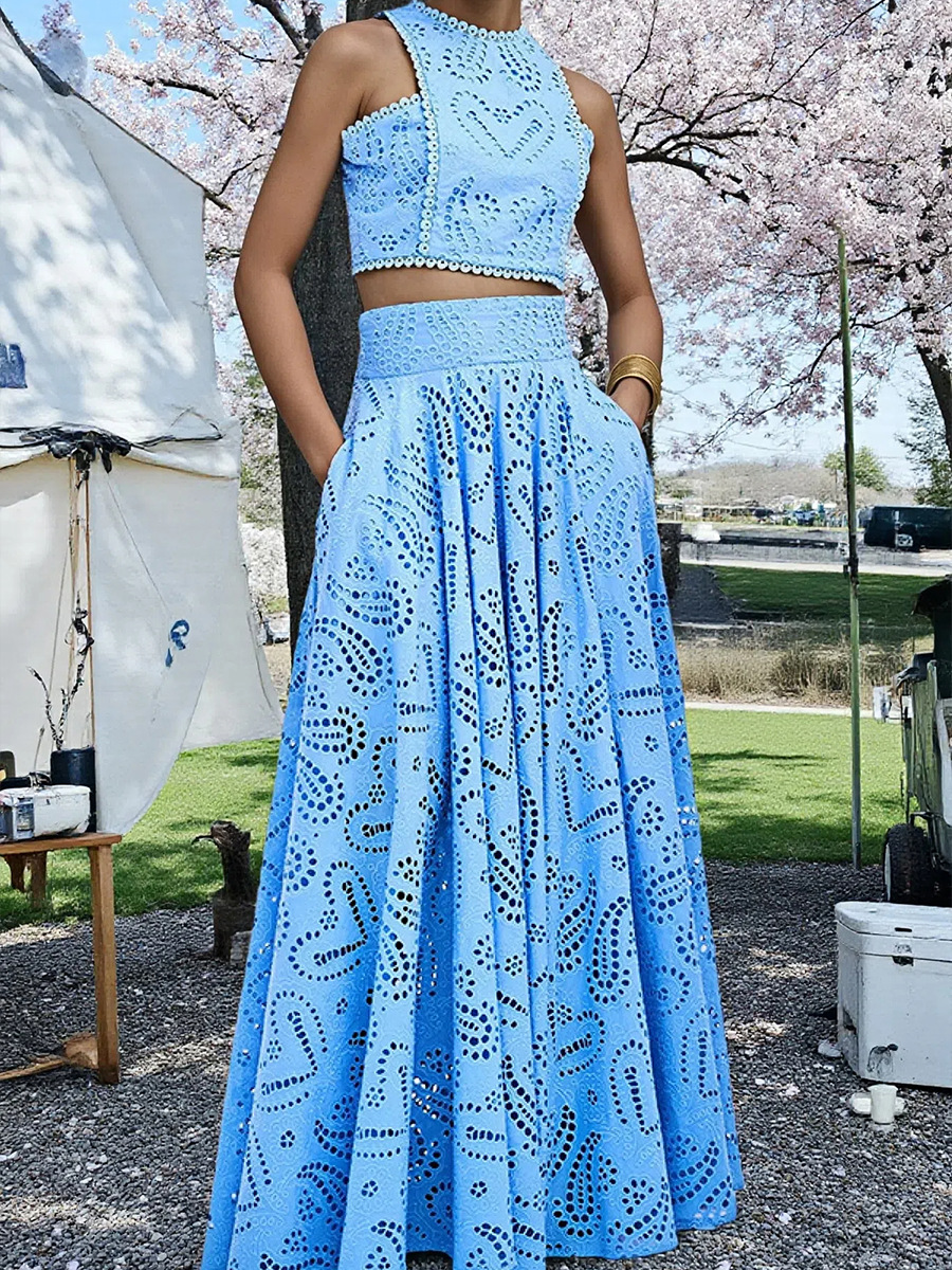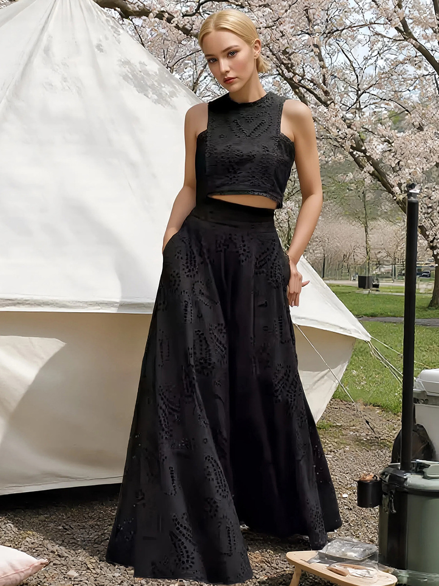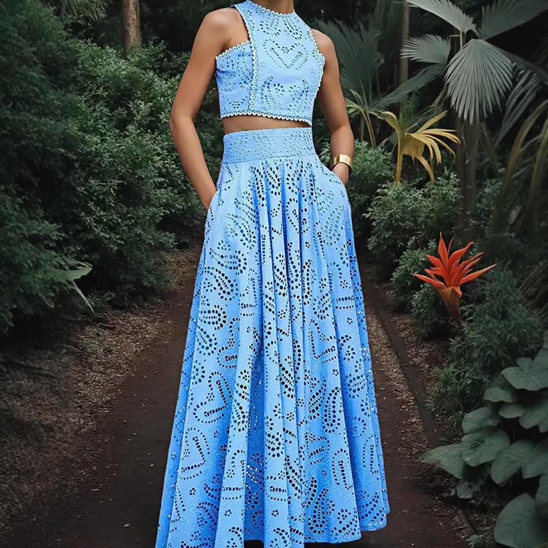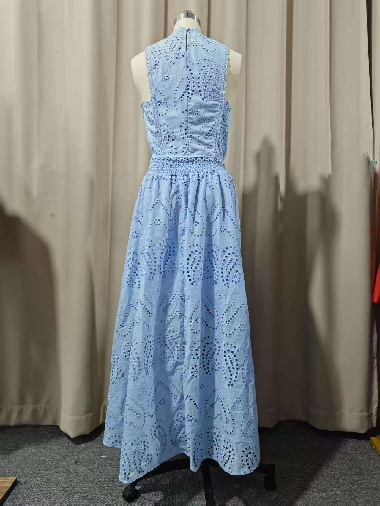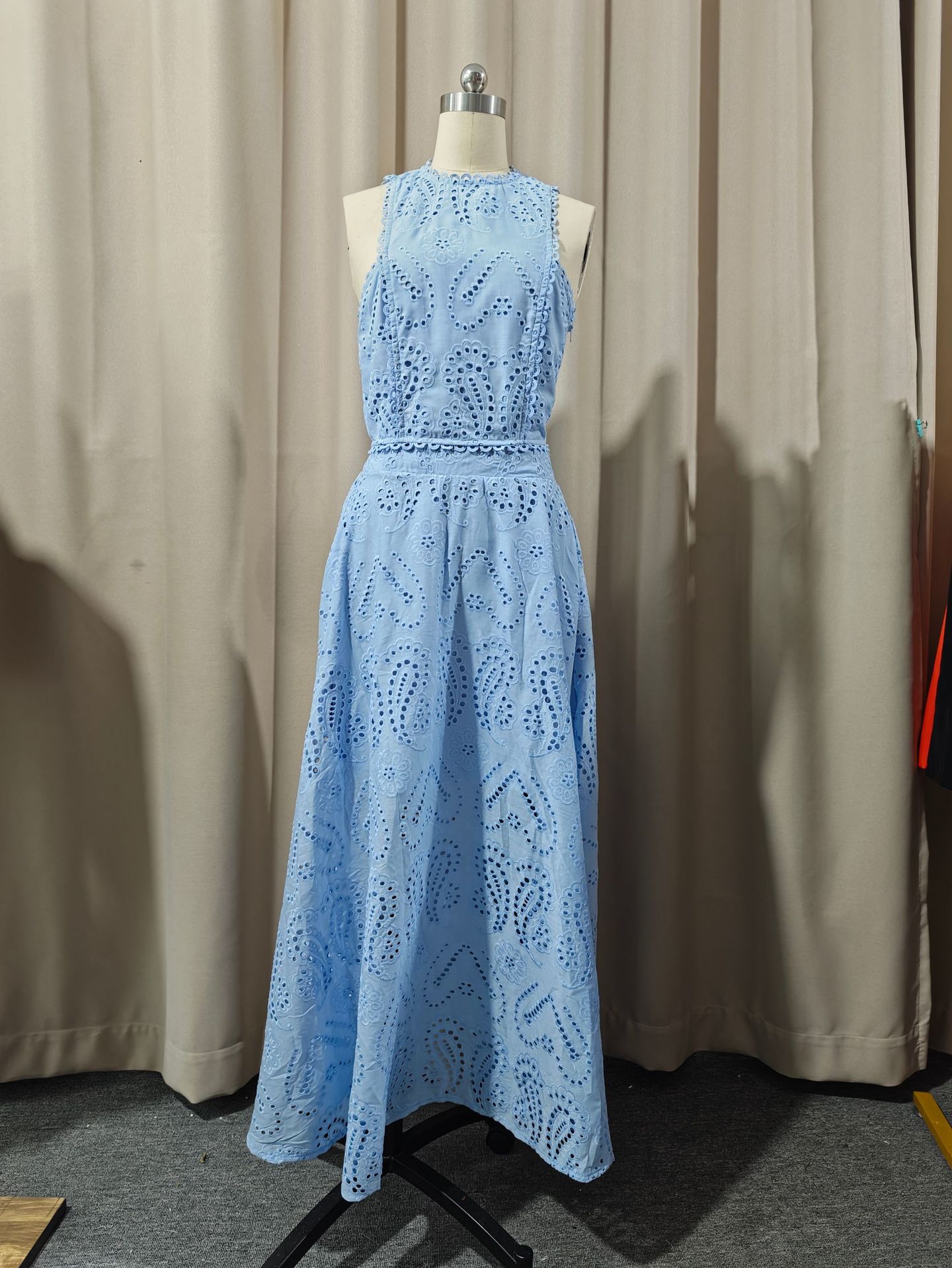 유럽과 미국의 아마존 대외 무역 국경 간 여성 의류 캐주얼 패션 민소매 포켓 롱 스커트 드레스 여성용 투피스 양복