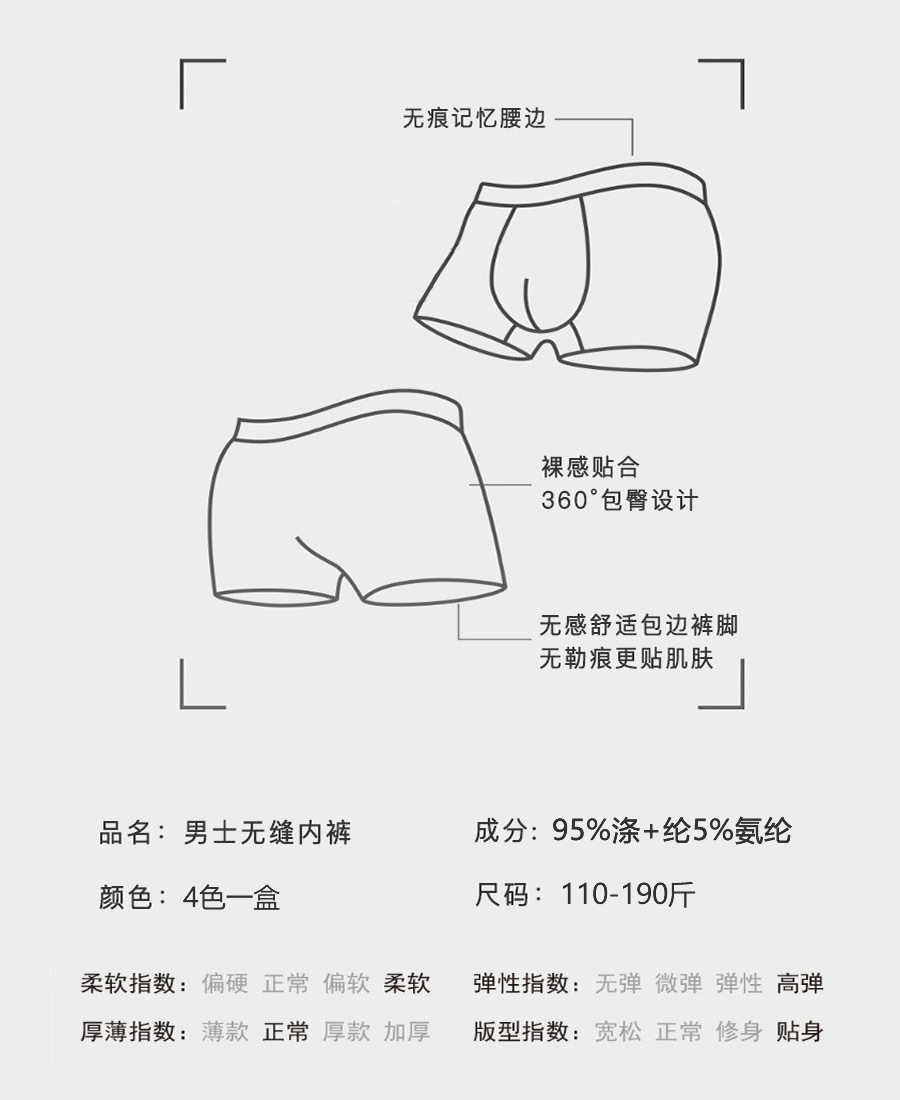 대외 무역 박스형 남성 속옷, 이음매 없는 고탄성 중간 허리 스포츠, 편안하고 통기성이 뛰어나며 누드 느낌의 사각 복서 팬티 도매스토어 가기