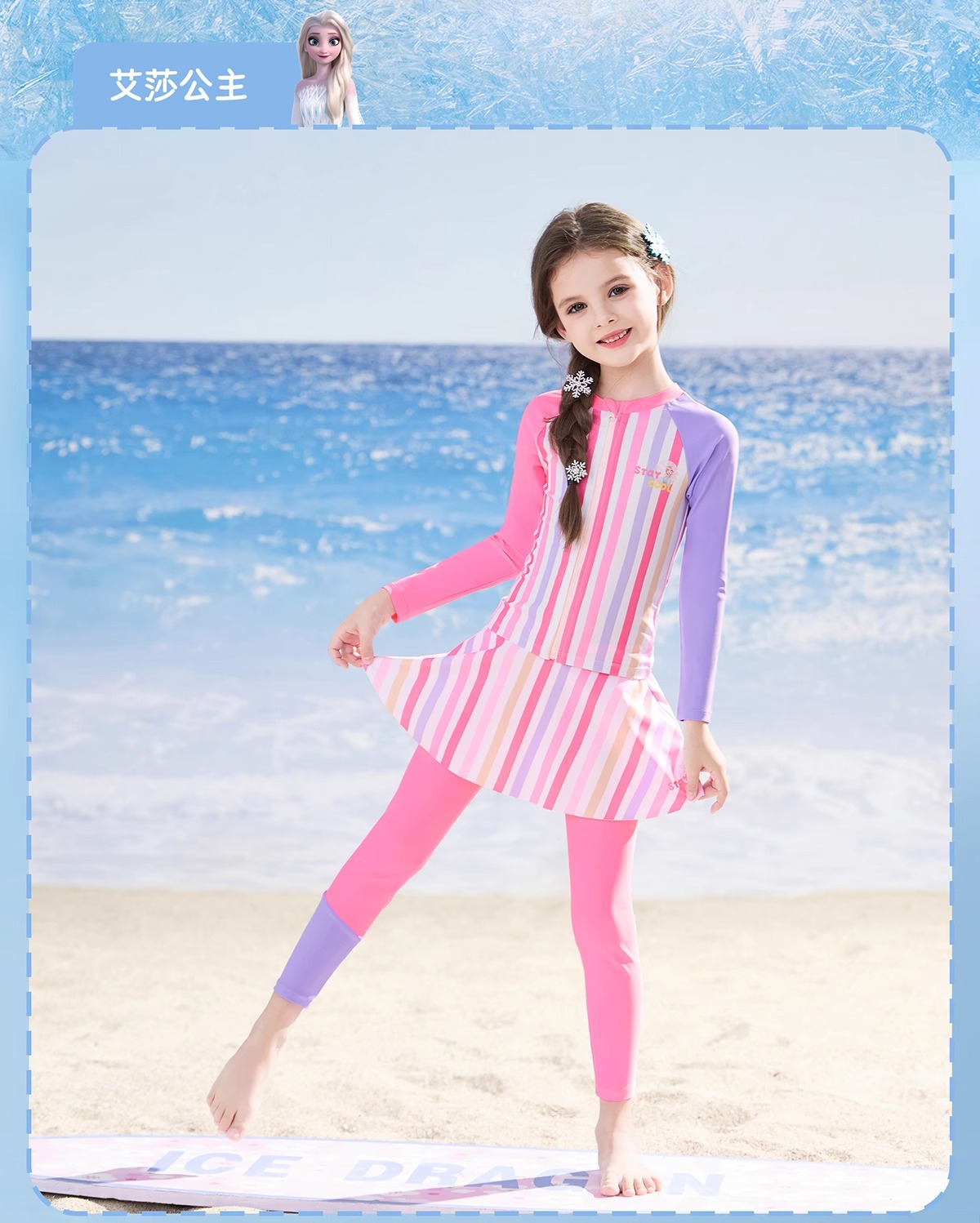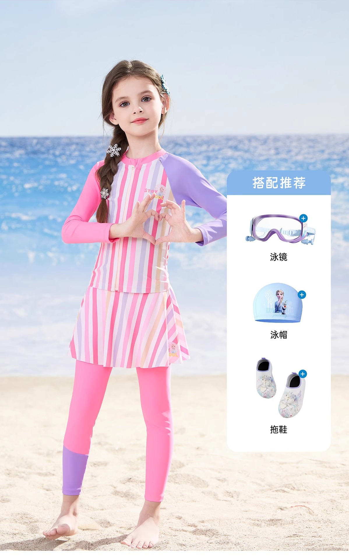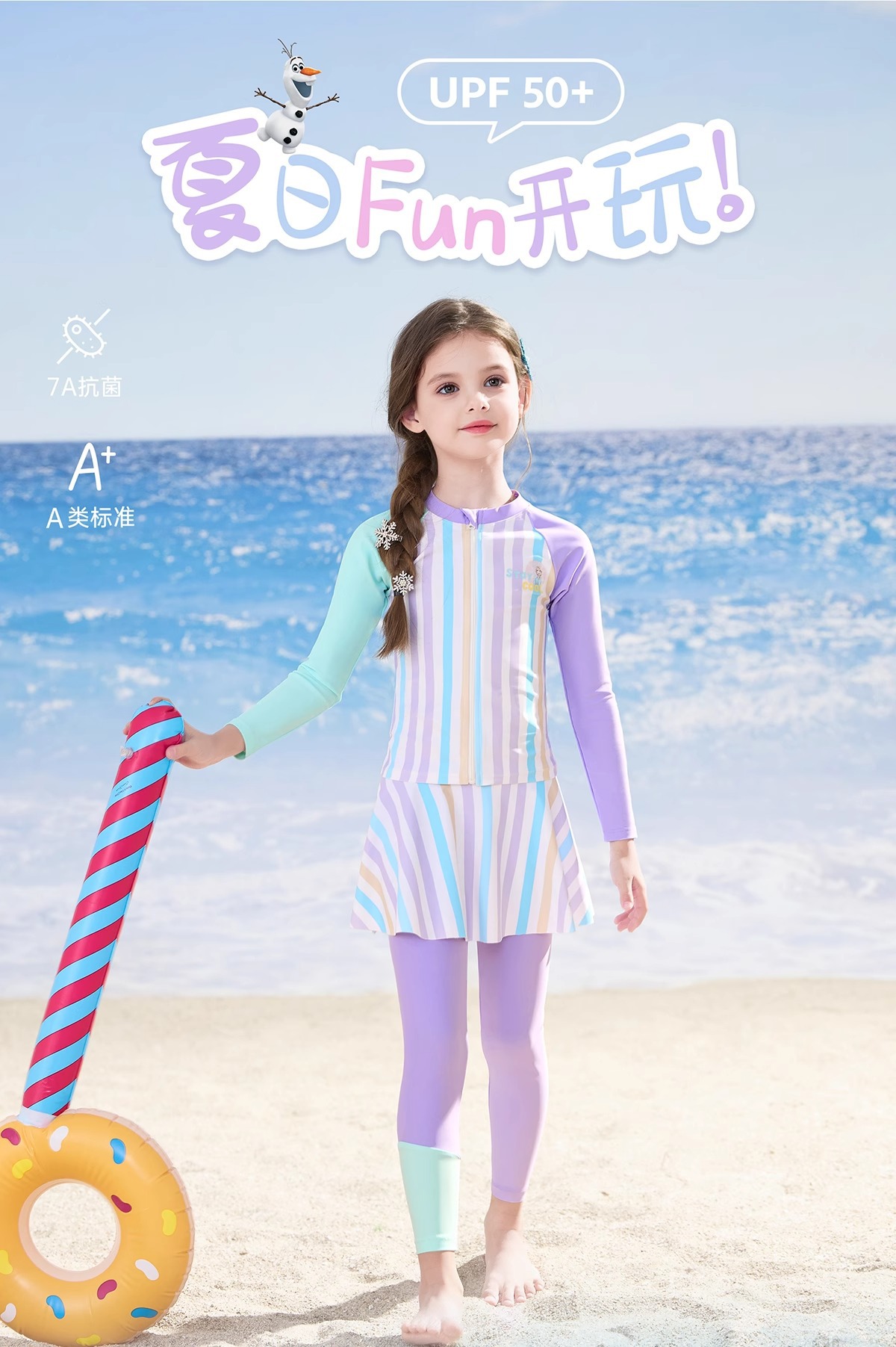 디즈니 어린이 수영복 소녀 아기 긴팔 긴 바지 스플릿 수영복 바지 온천 해변 자외선 차단 수영복