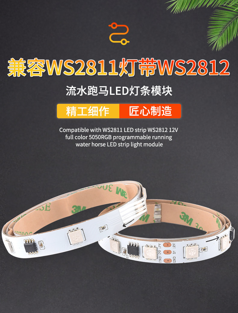 WS2811 램프 스트립과 호환 가능 WS2812 12V 풀 컬러 5050RGB 프로그래밍 가능한 흐르는 물 경주 LED 라이트 스트립 모듈