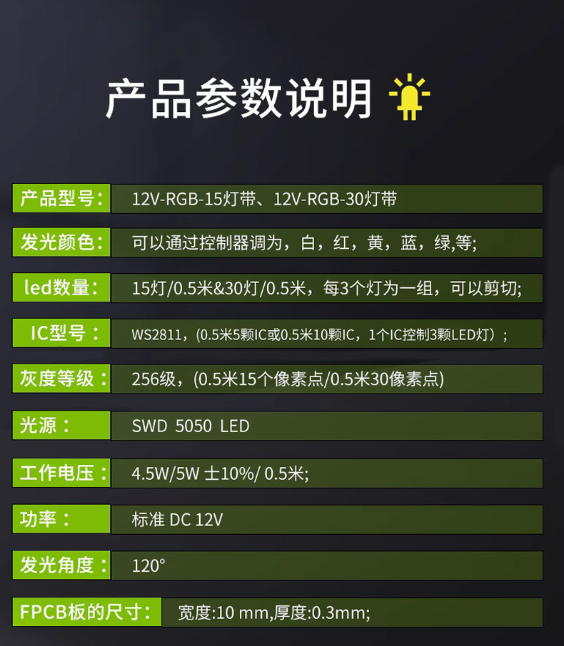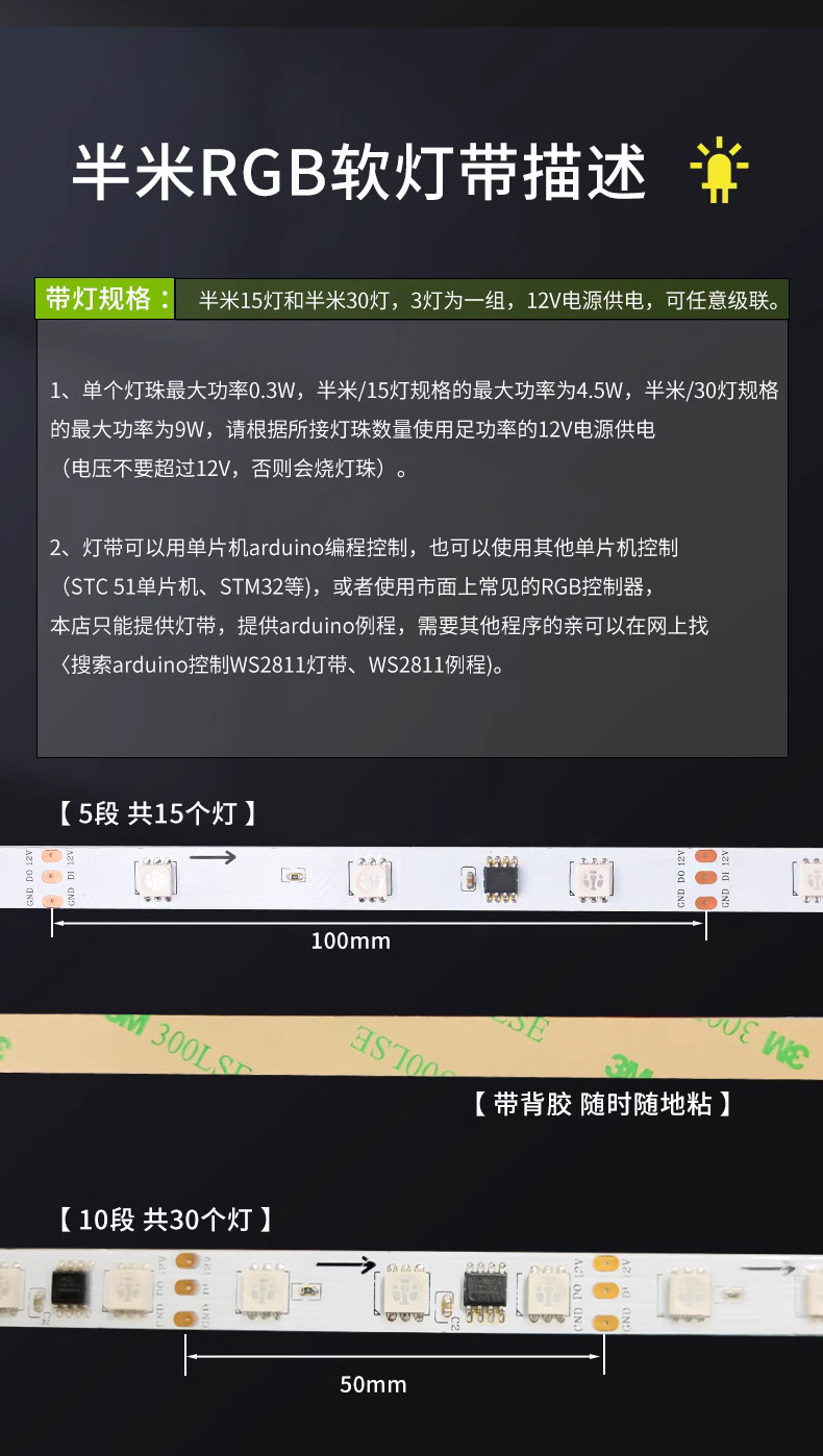 • 12V-RGB-50cm 30 라이트 스트립 [폭 10mm]