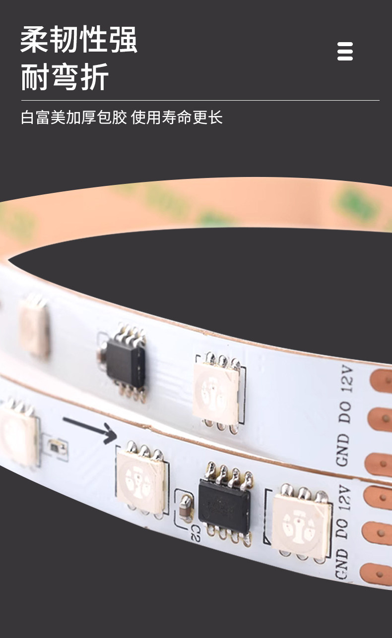 WS2811 램프 스트립과 호환 가능 WS2812 12V 풀 컬러 5050RGB 프로그래밍 가능한 흐르는 물 경주 LED 라이트 스트립 모듈스토어 가기