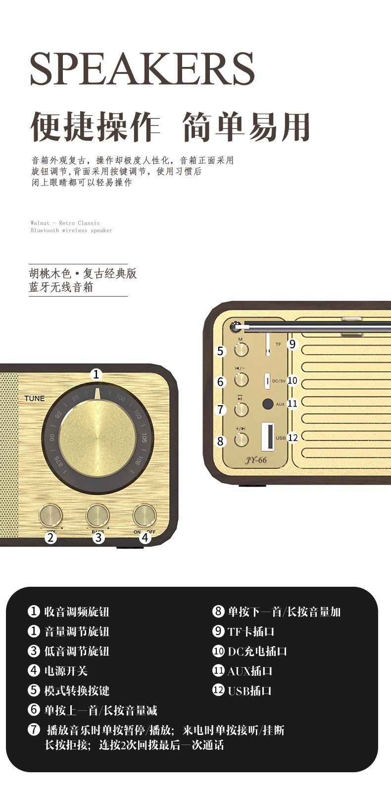 크리 에이 티브 레트로 홈 나무 블루투스 스피커 서브 우퍼 스테레오 카드 라디오 블루투스 오디오 JY-66