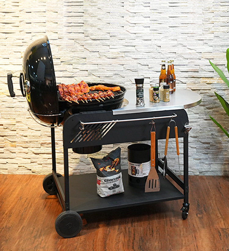 국경 간 고급 광택 에나멜 22.5inch 카트 애플 스토브 다기능 야외 바베큐 그릴 바베큐 숯불 그릴스토어 가기