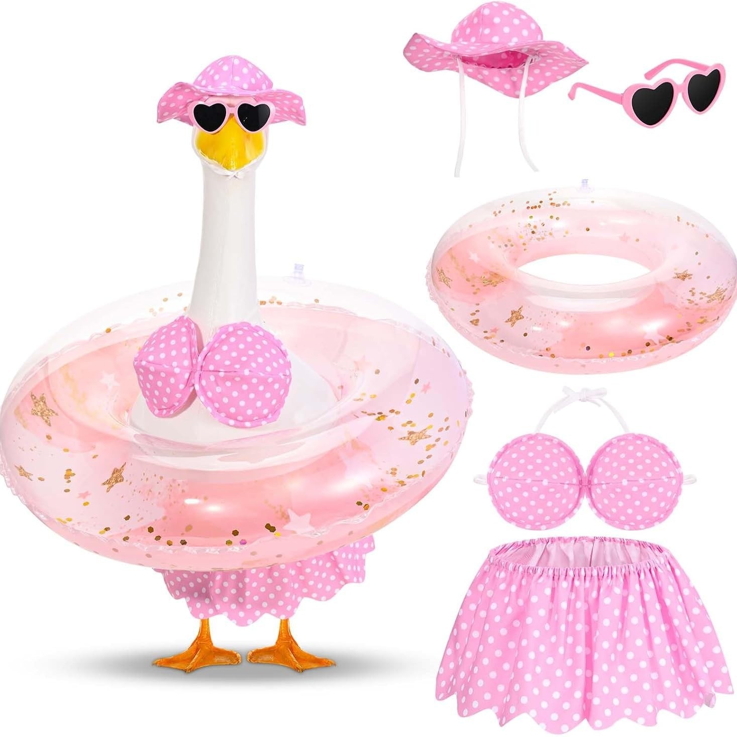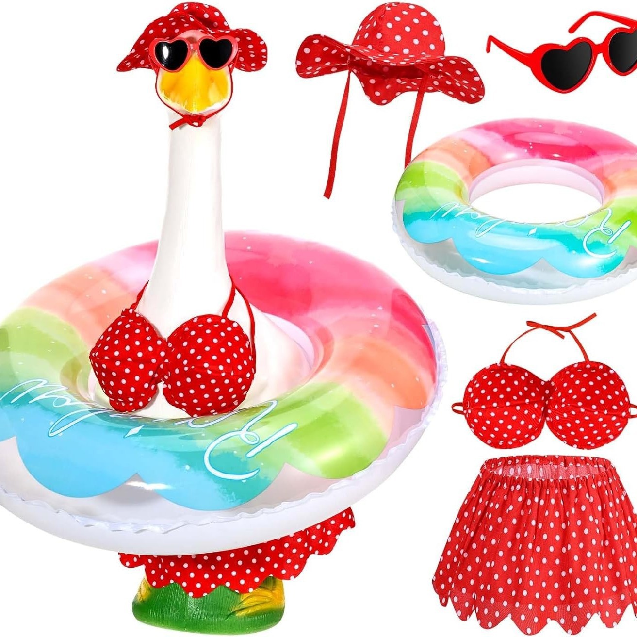 하와이안 베란다 거위 의상 여름 비키니 수영 반지 거위 의상 23인치 거위 동상에 적합 Goose Outfits