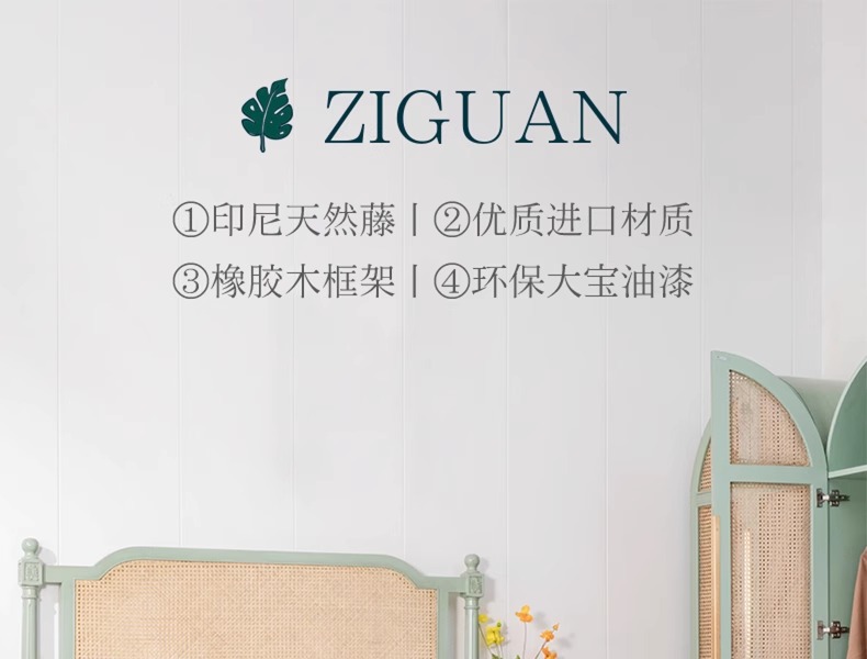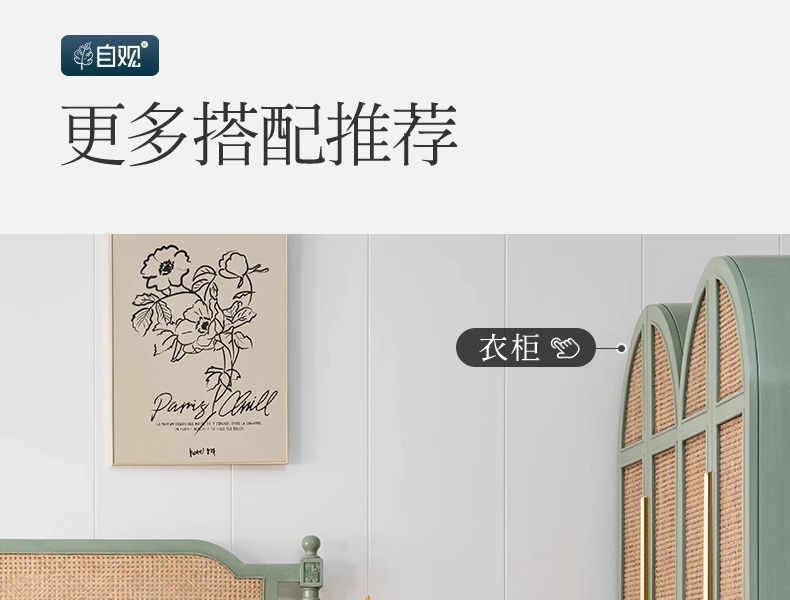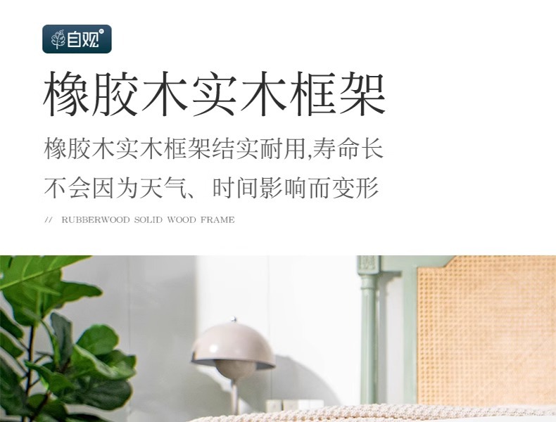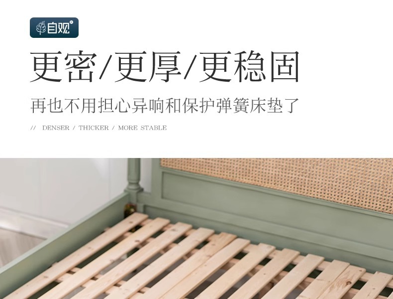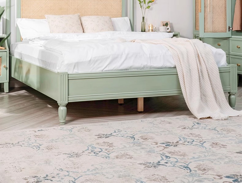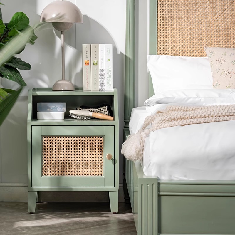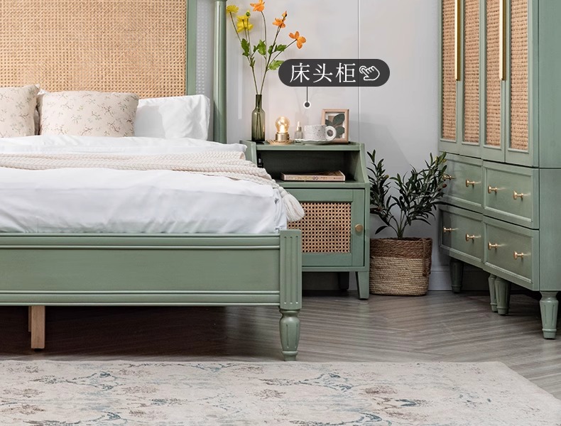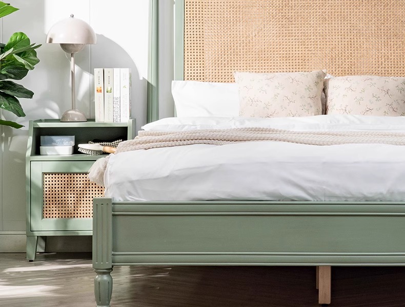 북유럽 크림 스타일 단단한 나무 등나무 침대 홈 침실 1.8m 더블 침대 ins wabi-sabi 스타일 호텔 및 B&B 침대스토어 가기