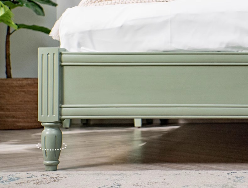 • 디스트레스드 그린 1.8m 침대 [원목 등나무]