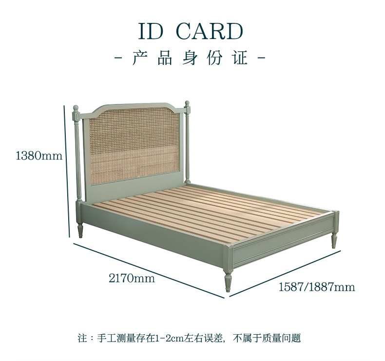 북유럽 크림 스타일 단단한 나무 등나무 침대 홈 침실 1.8m 더블 침대 ins wabi-sabi 스타일 호텔 및 B&B 침대