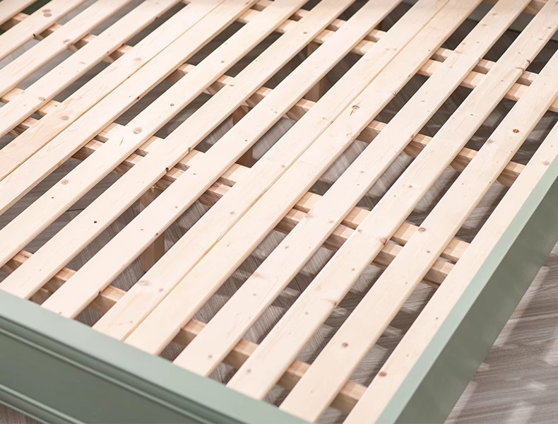 • 디스트레스드 그린 1.5m 침대 [원목 등나무]