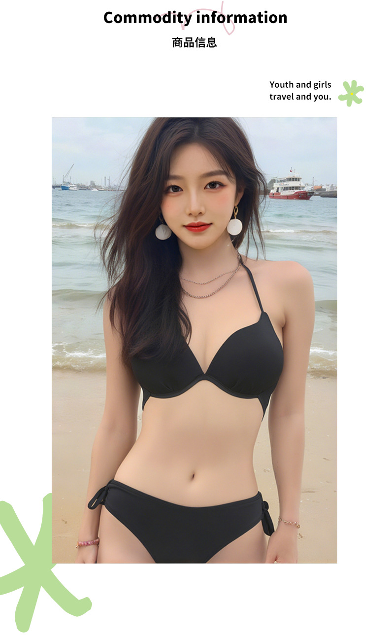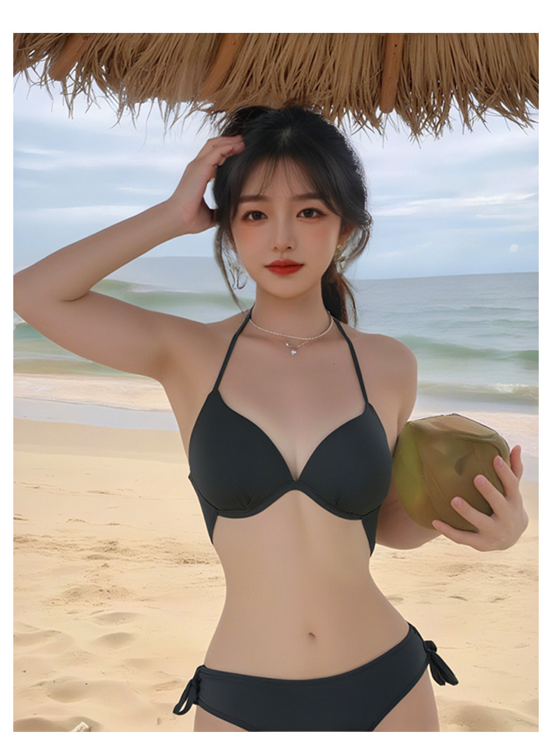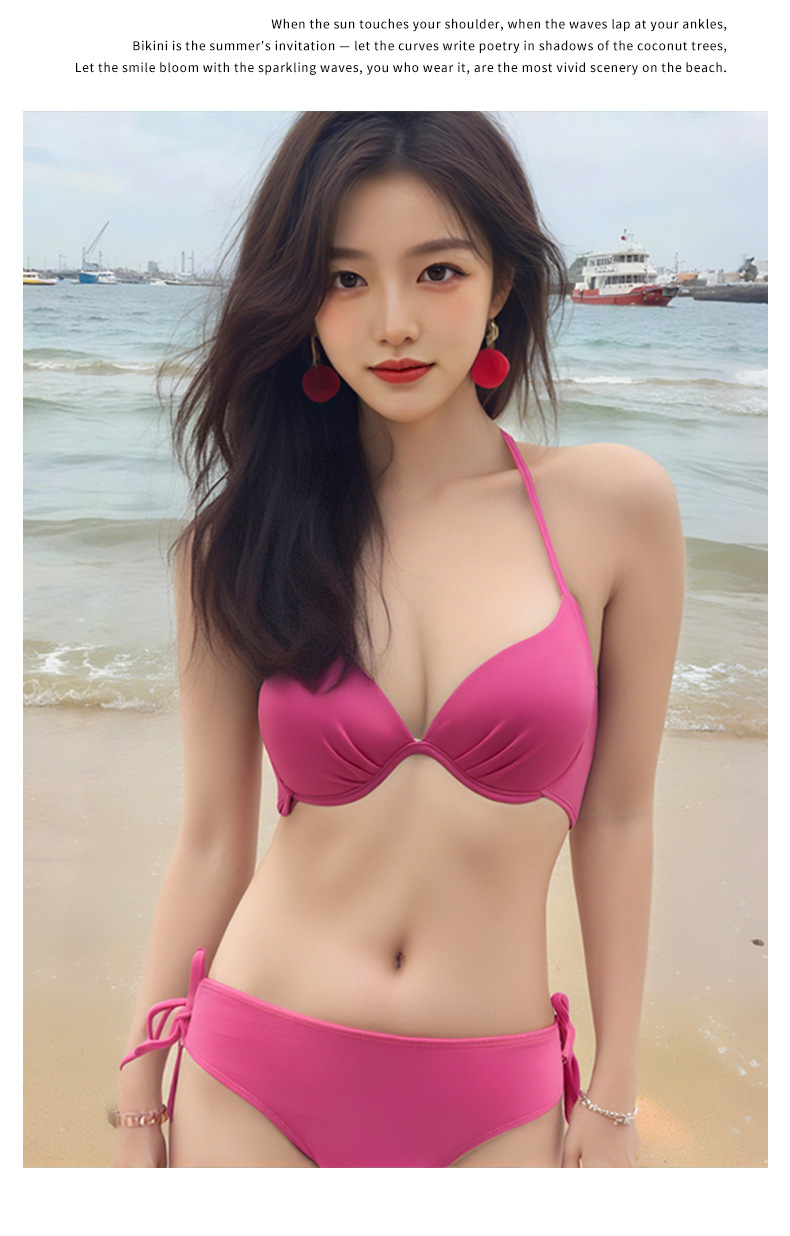 강철 지지대와 가슴 패드가 있는 여성용 섹시한 비키니 세트 푸시업 트라이앵글 브라 3점 팬티 수영복 투피스 세트