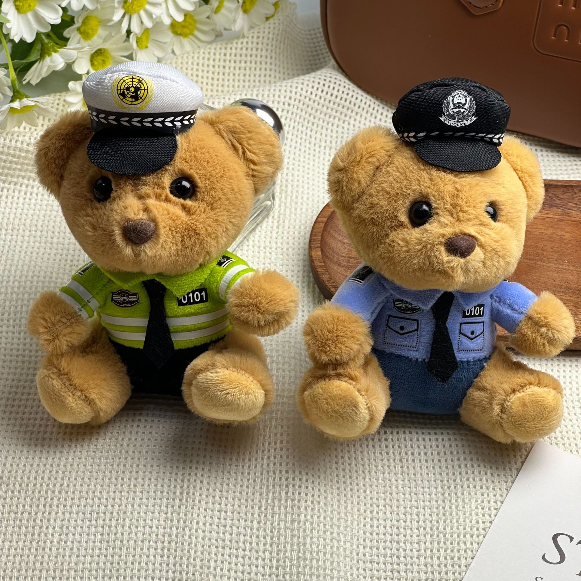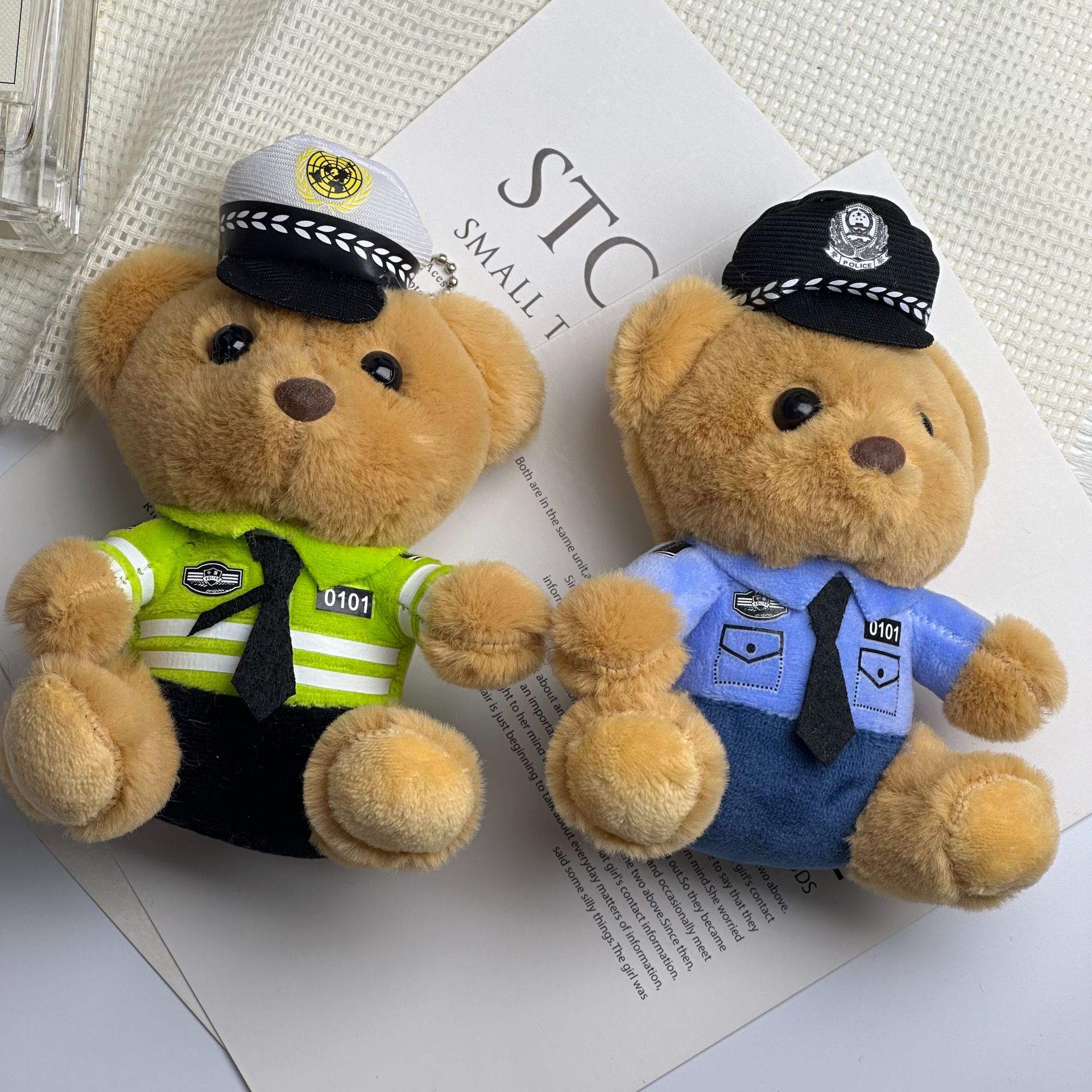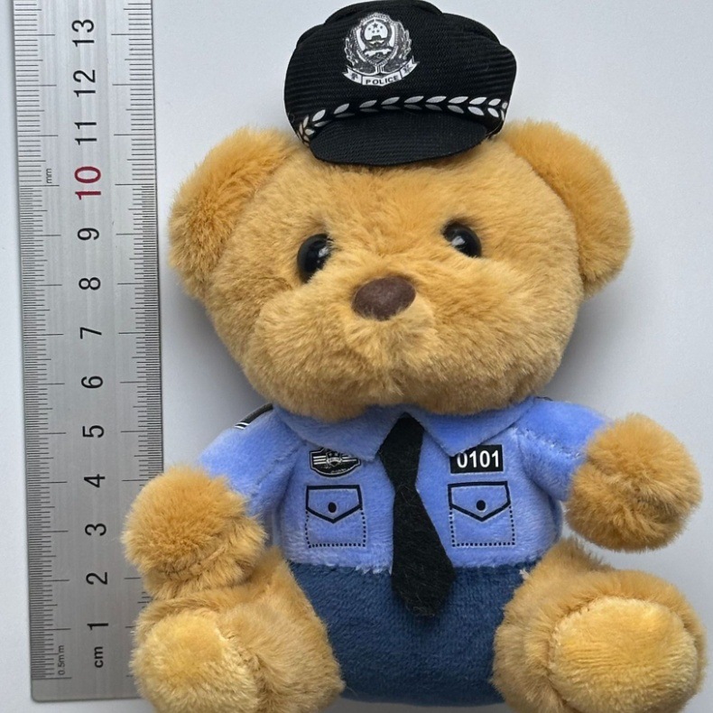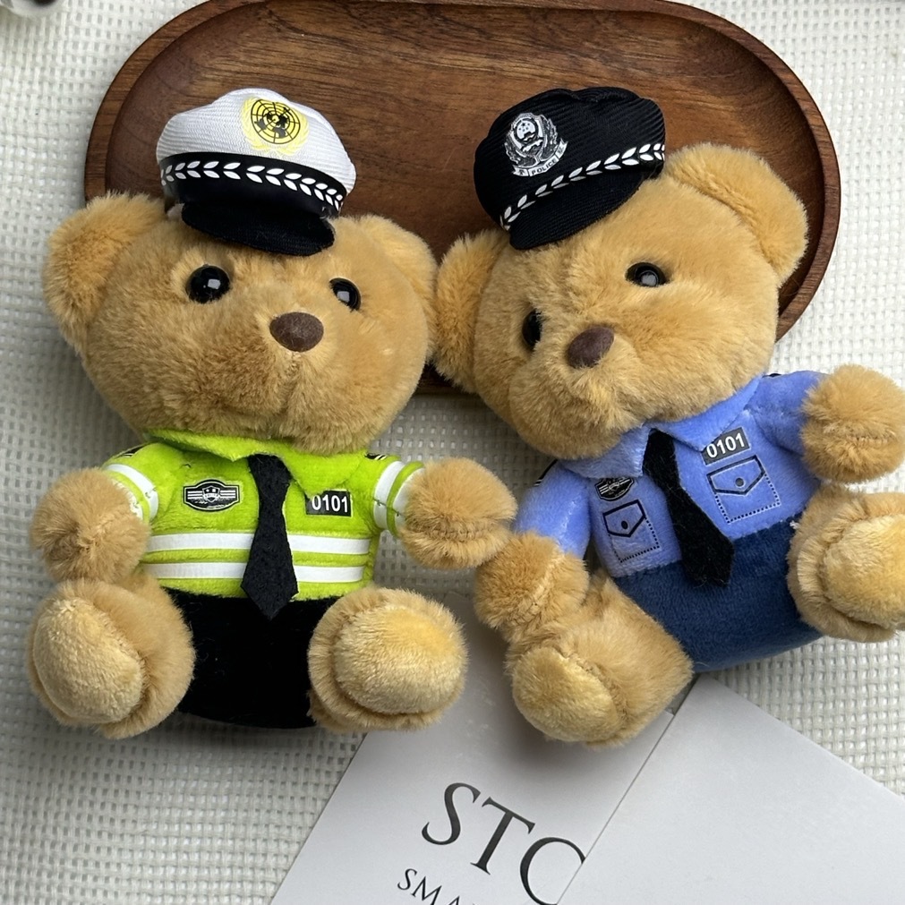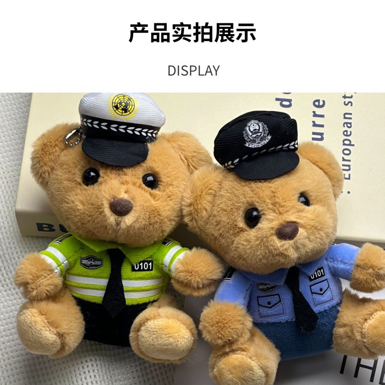 새로운 귀여운 교통 경찰 곰 키 체인 펜던트 경찰 곰 플러시 장난감 유니폼 테디 베어 인형 인형스토어 가기
