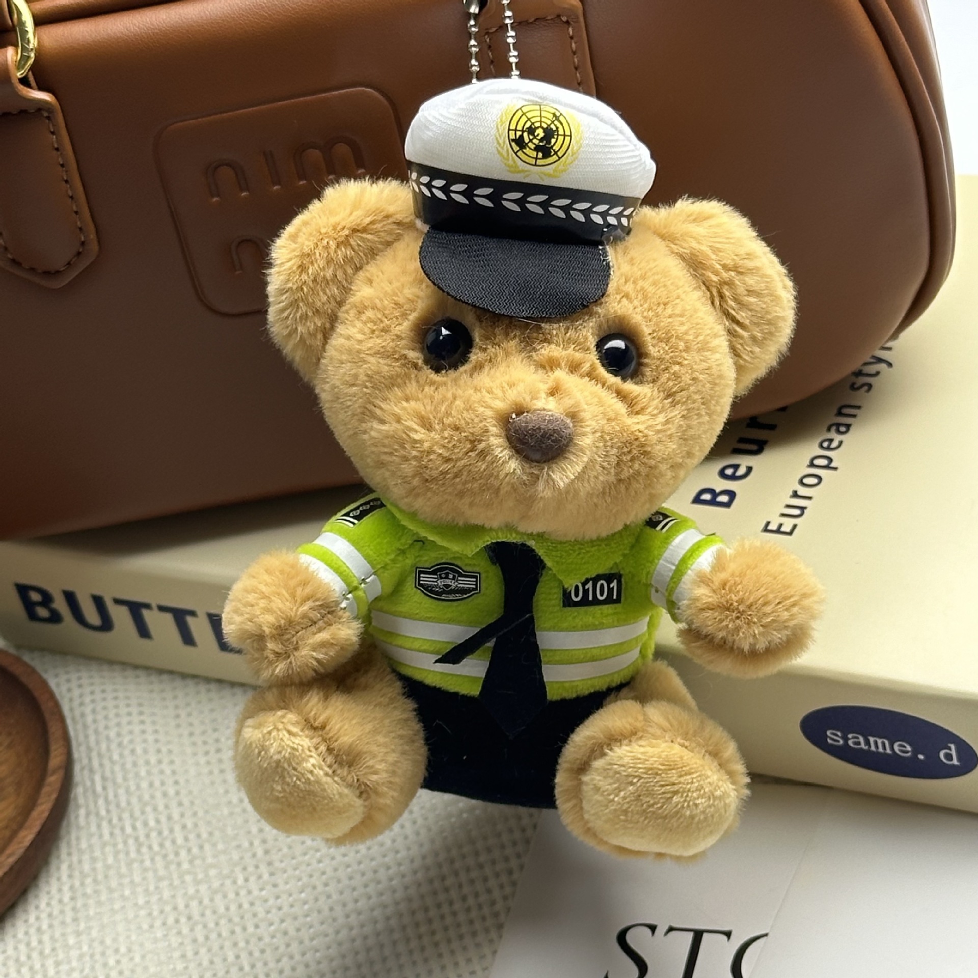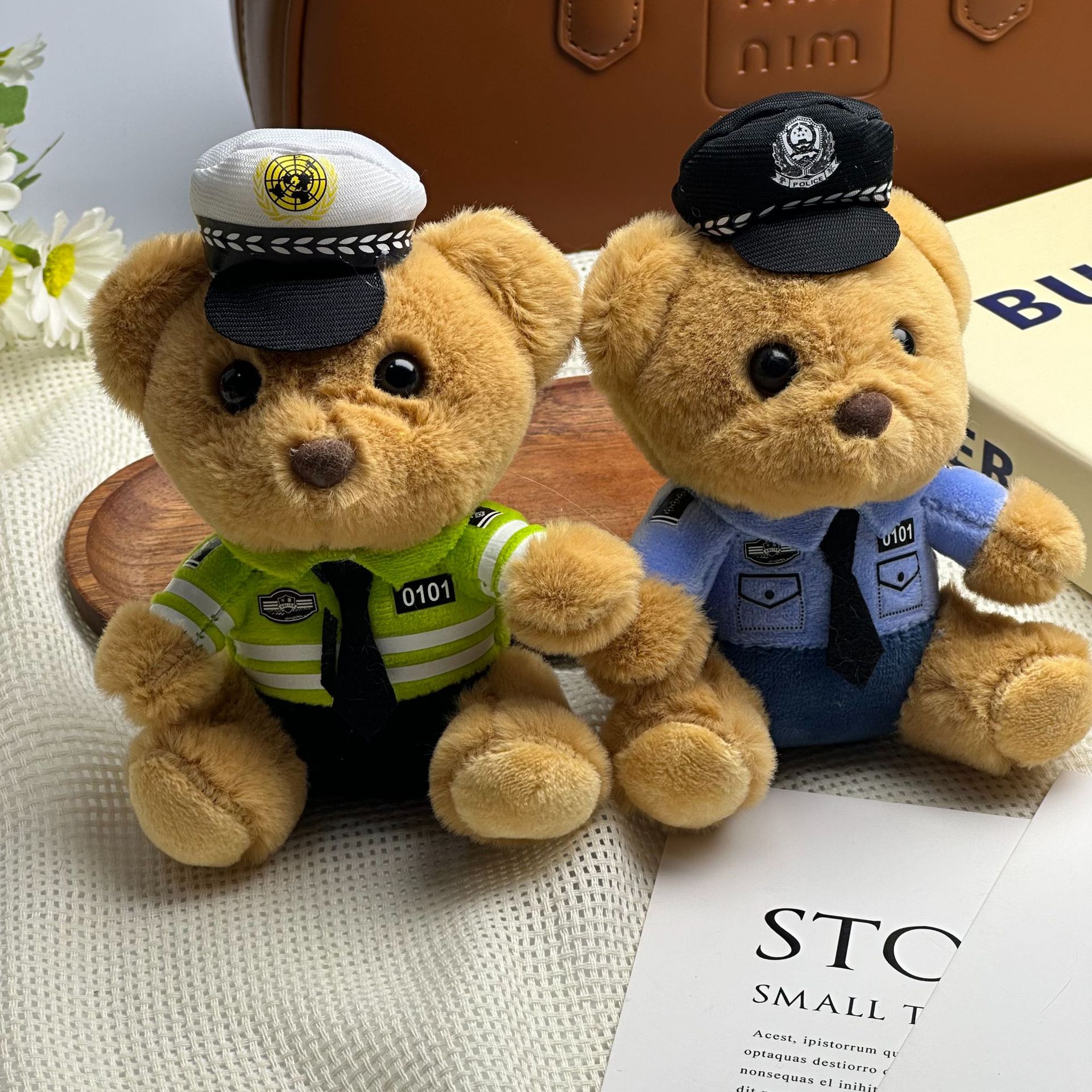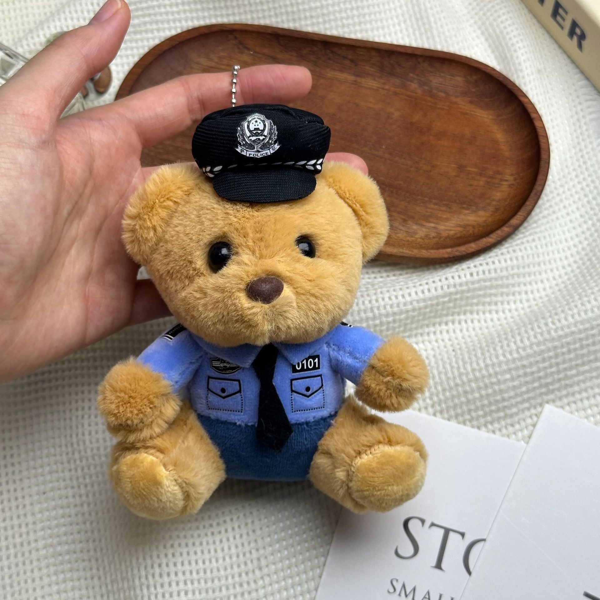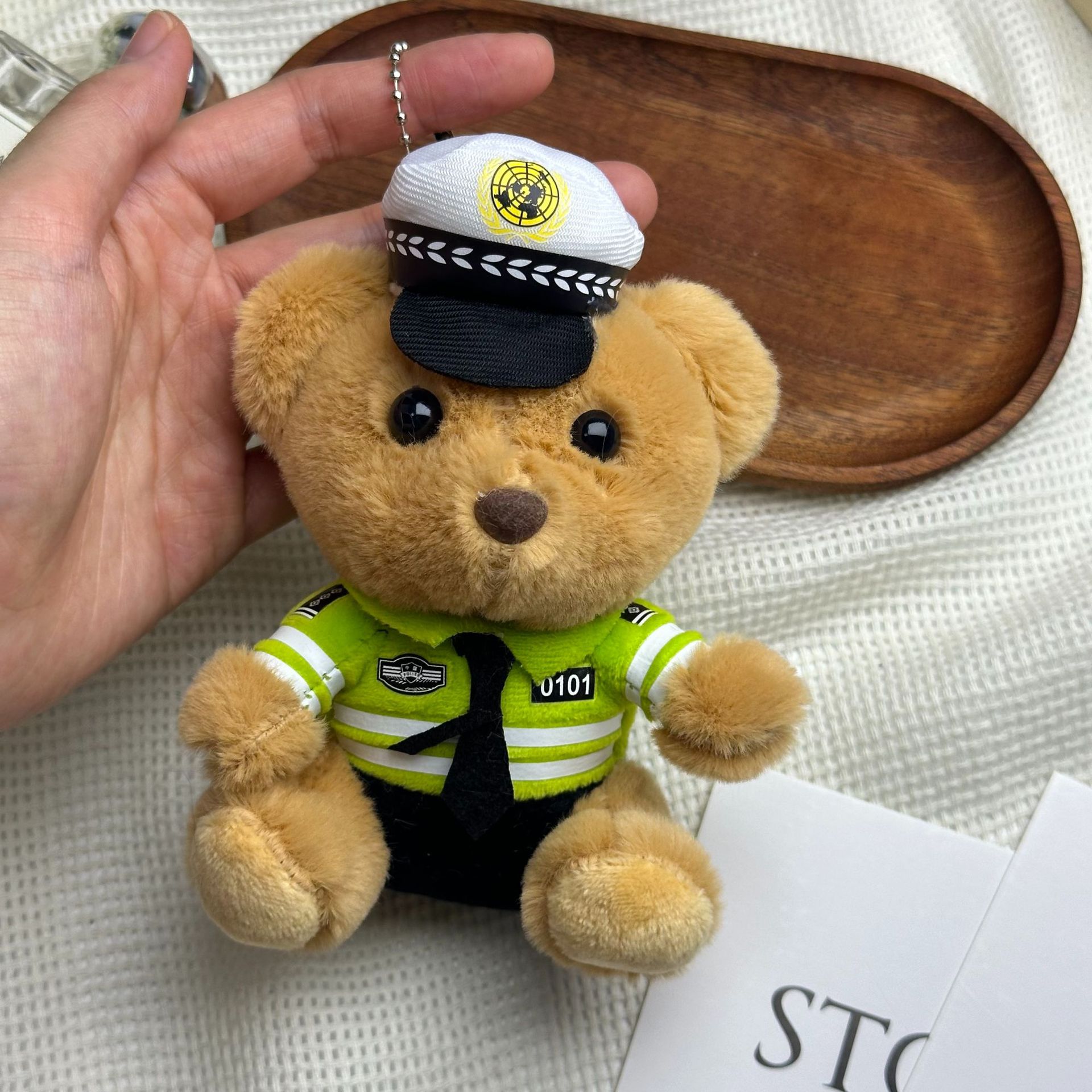 새로운 귀여운 교통 경찰 곰 키 체인 펜던트 경찰 곰 플러시 장난감 유니폼 테디 베어 인형 인형스토어 가기