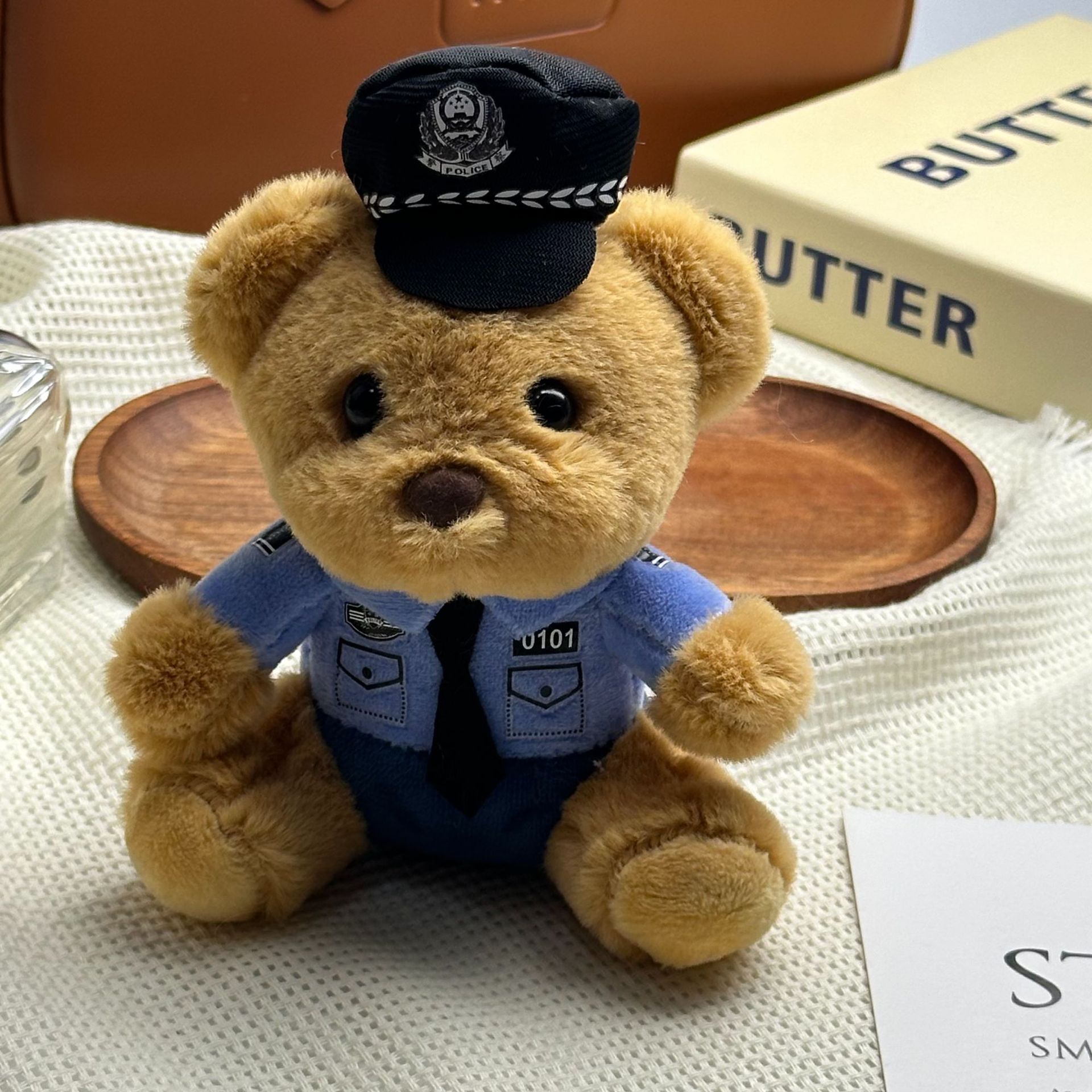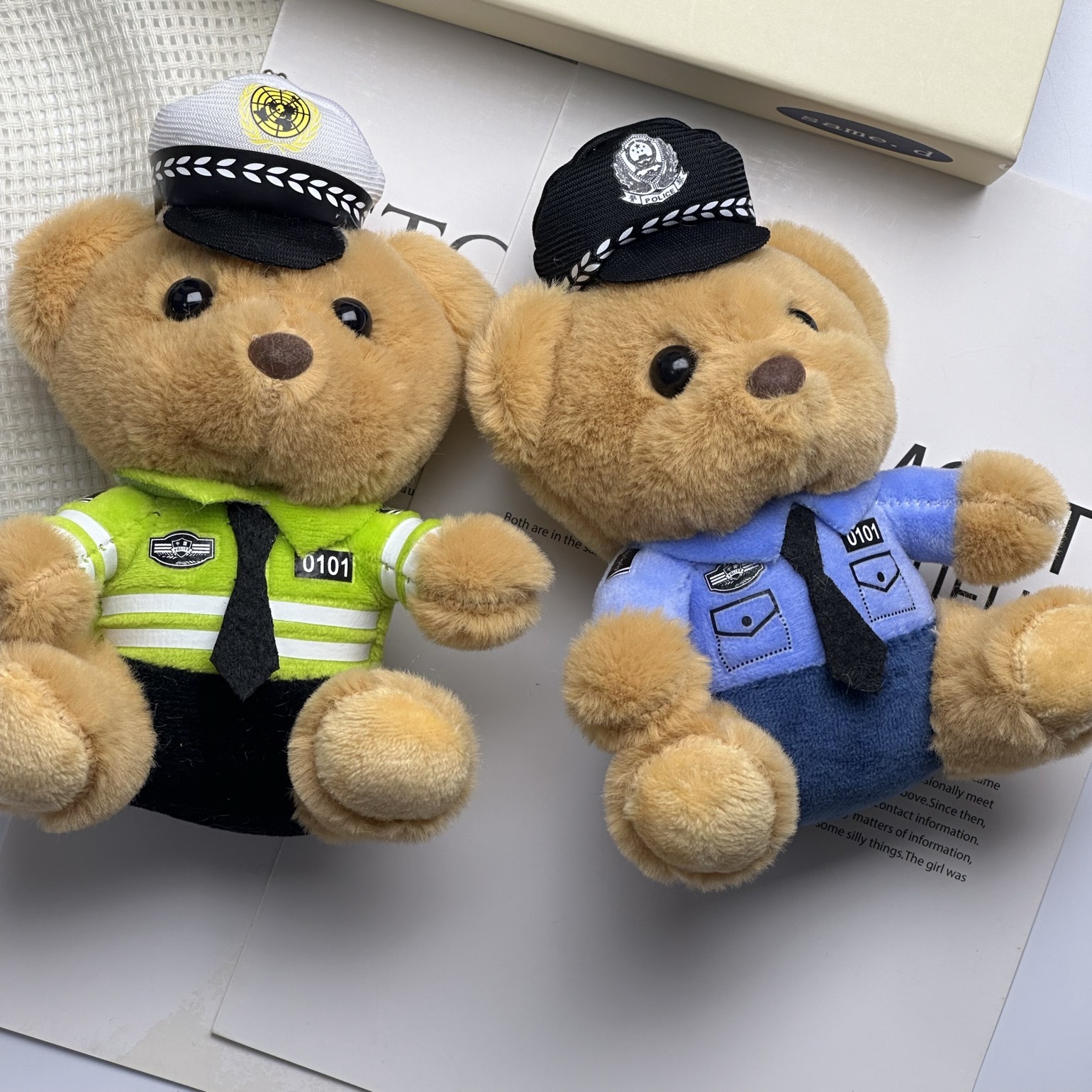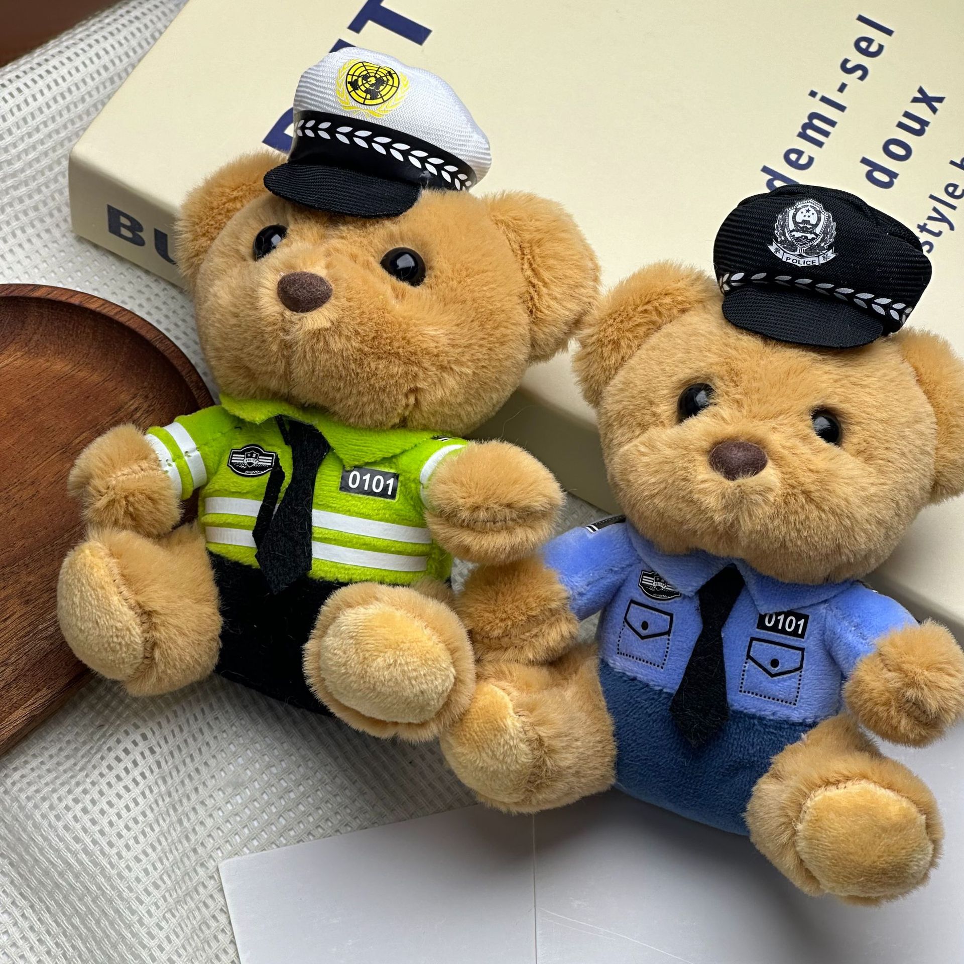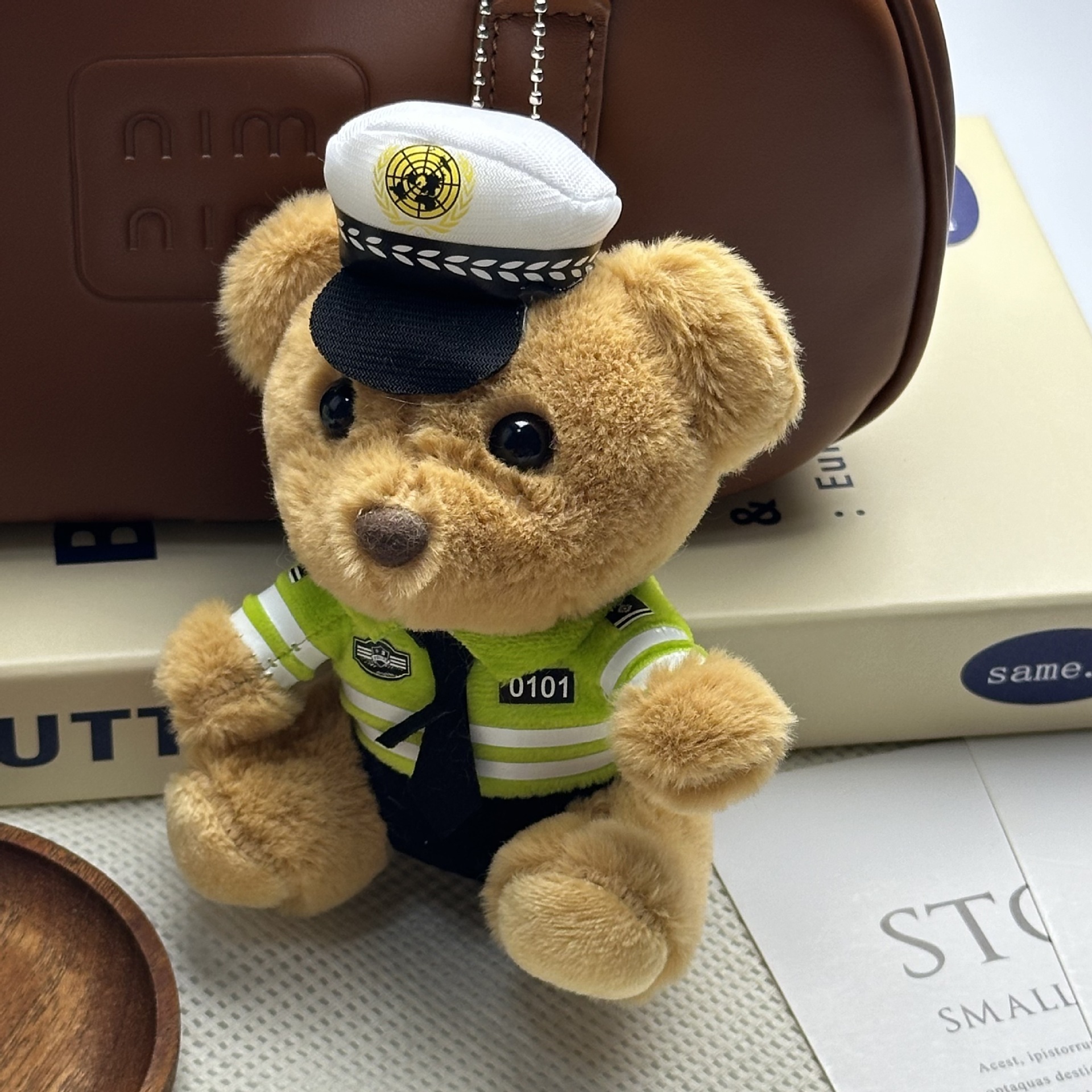 새로운 귀여운 교통 경찰 곰 키 체인 펜던트 경찰 곰 플러시 장난감 유니폼 테디 베어 인형 인형스토어 가기