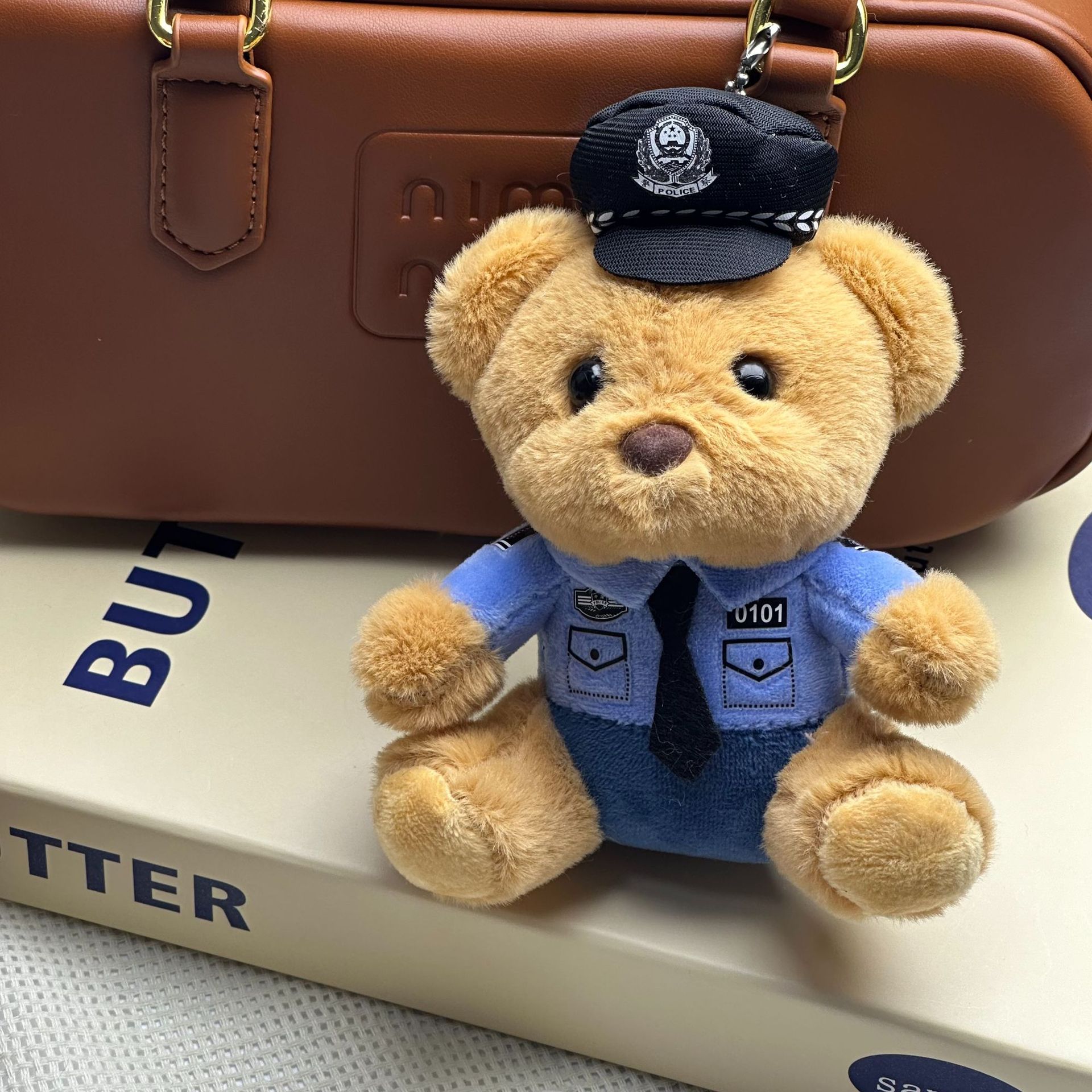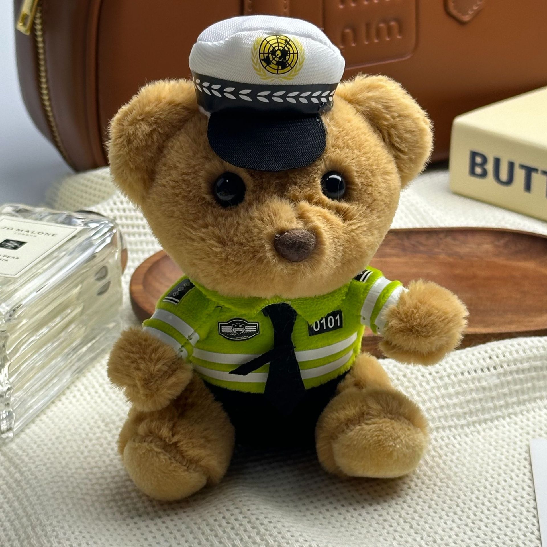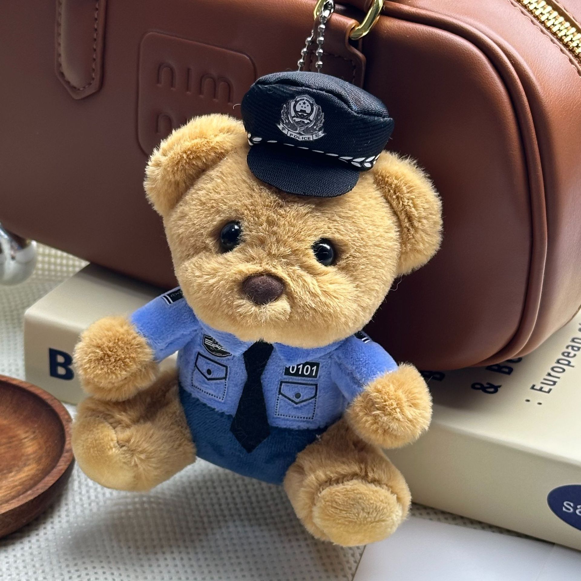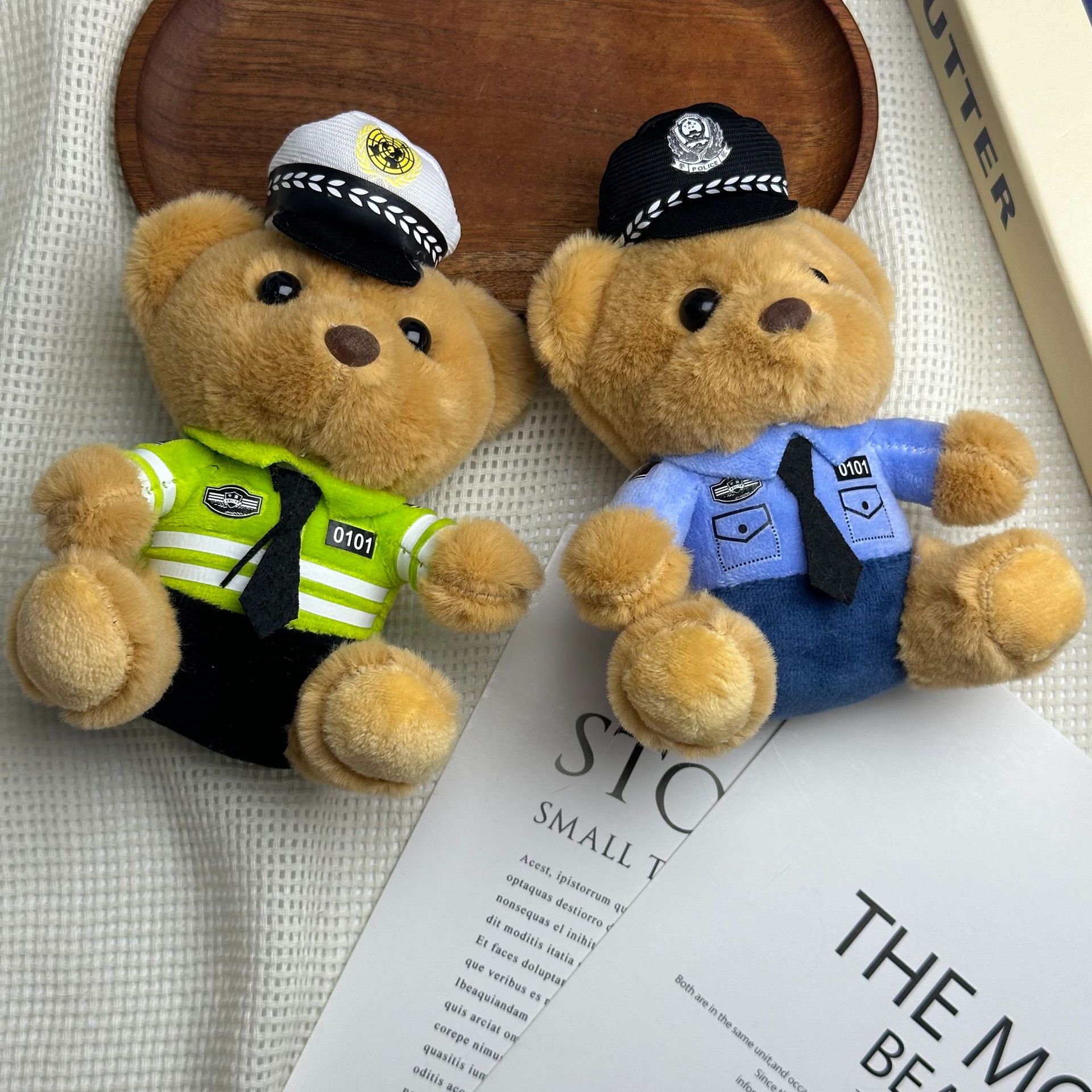 새로운 귀여운 교통 경찰 곰 키 체인 펜던트 경찰 곰 플러시 장난감 유니폼 테디 베어 인형 인형