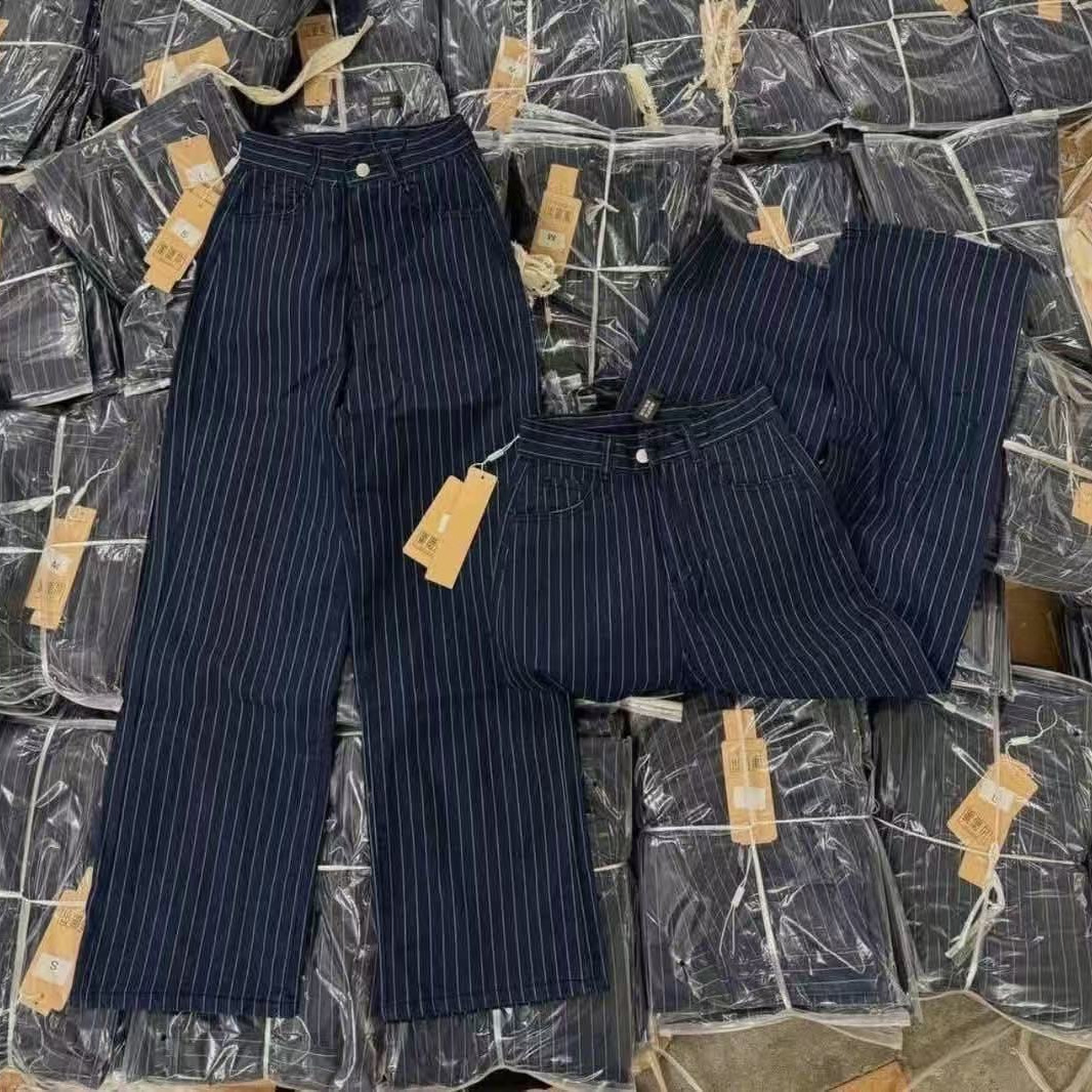 여름 여성을 위한 아메리칸 블루 스트라이프 청바지 새로운 루즈한 하이웨이스트 슬림 스트레이트 와이드 팬츠 플러스 사이즈 캐주얼 팬츠스토어 가기