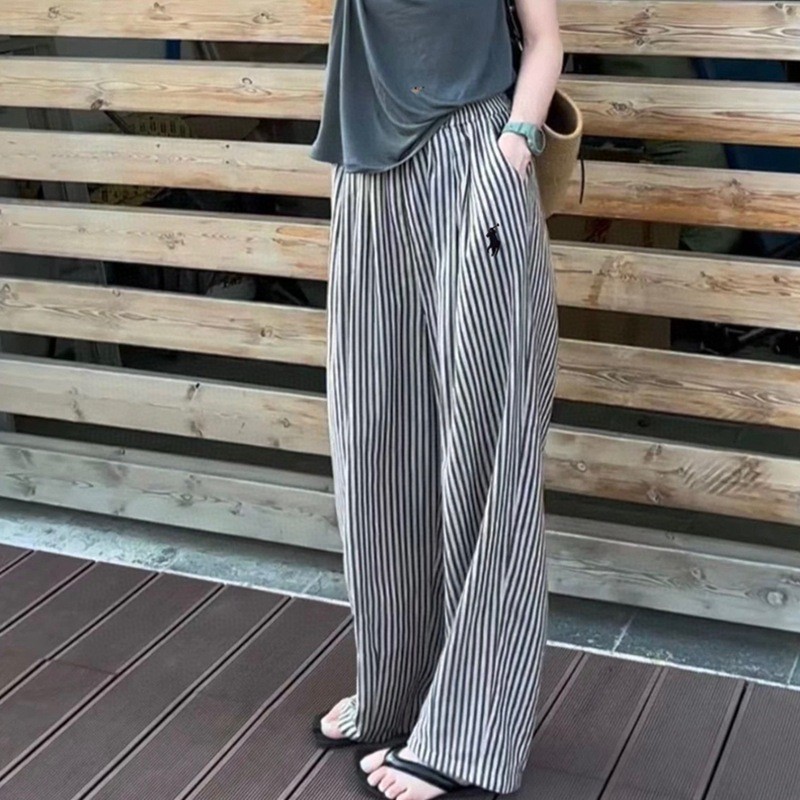 여름 여성을 위한 아메리칸 블루 스트라이프 청바지 새로운 루즈한 하이웨이스트 슬림 스트레이트 와이드 팬츠 플러스 사이즈 캐주얼 팬츠