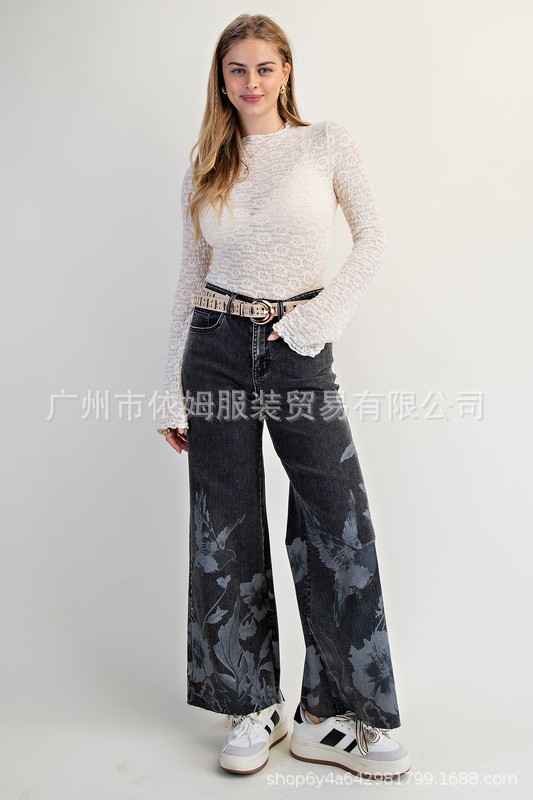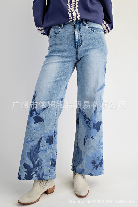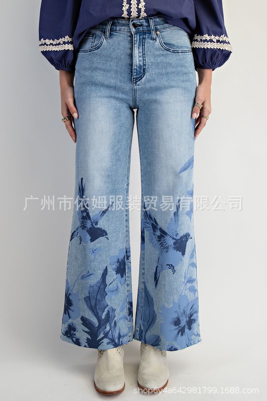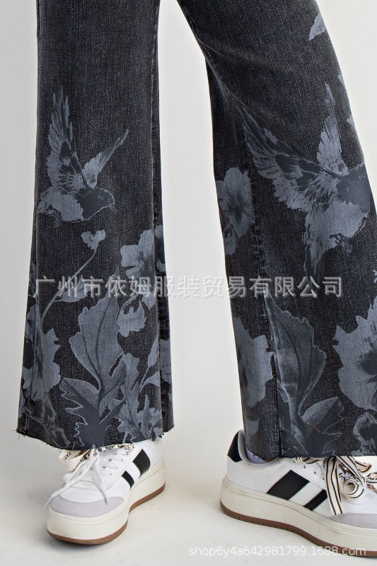 Amazon 25 가을 겨울 새로운 크로스보더 유럽과 미국 의류 패션 다목적 마이크로 플레어 청바지 여성용 하이 웨이스트 캐주얼 바지스토어 가기