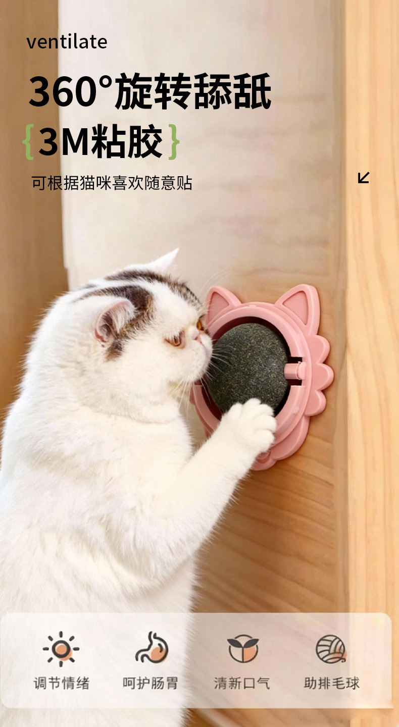 맞춤형 공장 직판 도매 고양이 민트볼 회전식 고양이 장난감 민트볼 벽걸이형 핥기 재미있는 애완동물 장난감